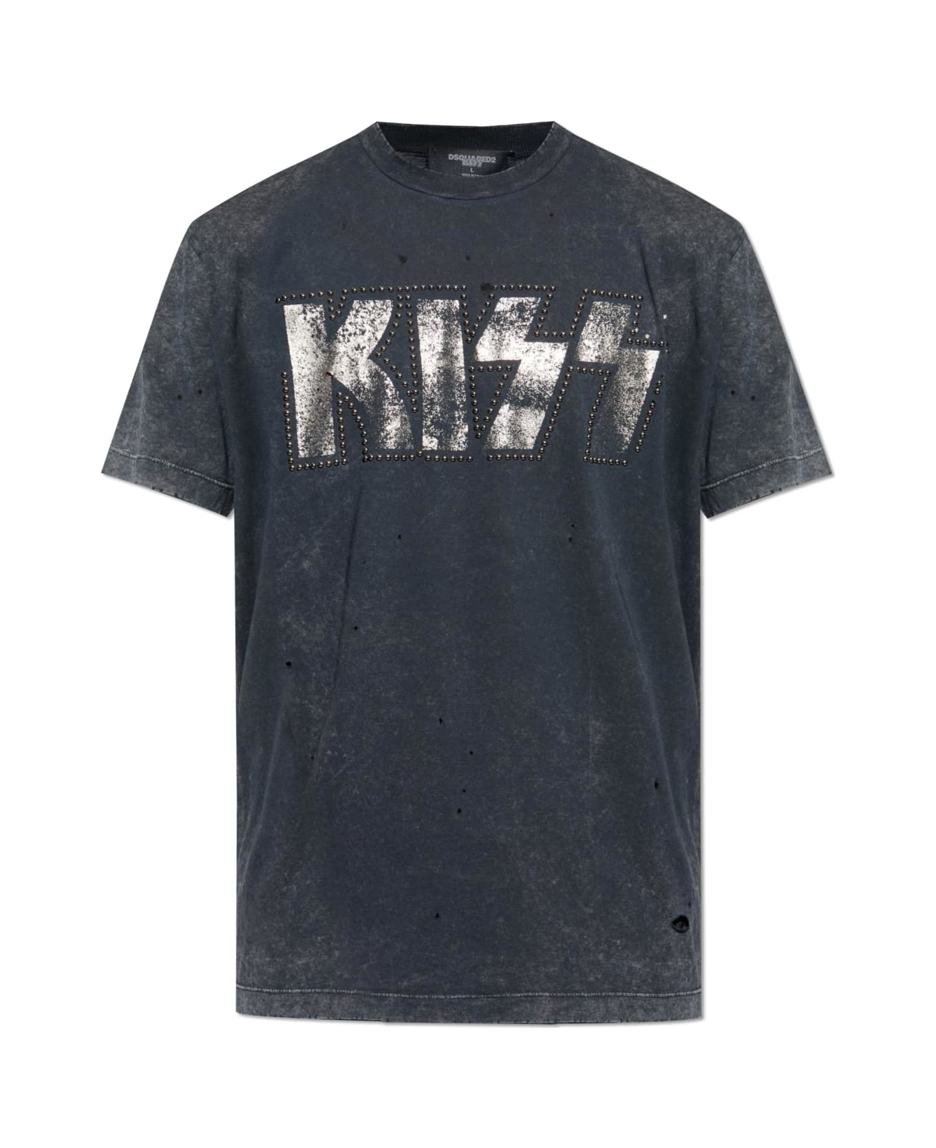 Dsquared2 X KISS is a celebration of iconic design and edgy sophistication. This classic crew neck T-shirt, expertly tailored in a straight silhouette with short sleeves, exudes a subtle vintage vibe, thanks to its gently faded black premium cotton. The front features a bold, unmistakable