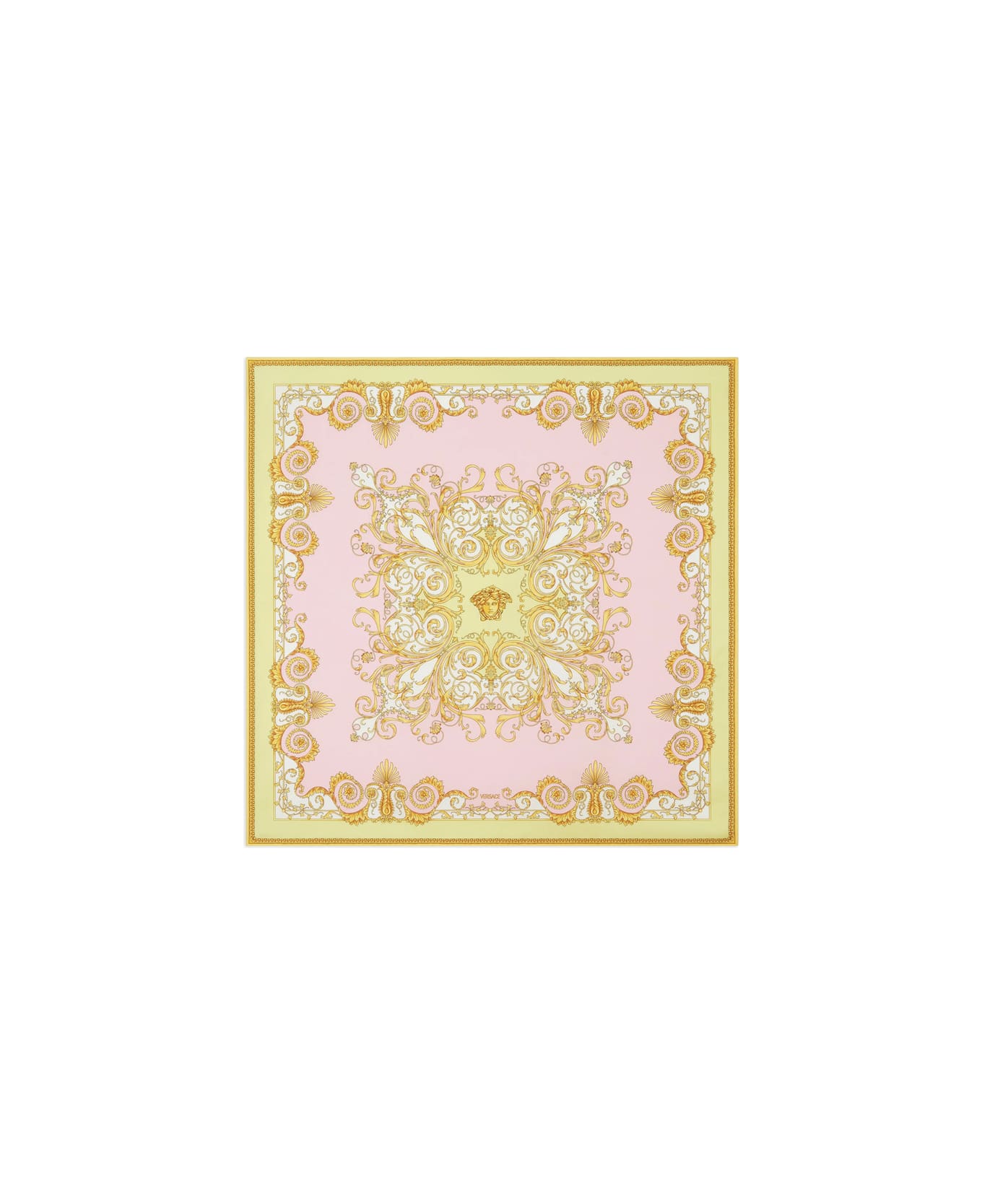 yellow and pink silk Spring Barocco print hand-rolled edges square shape This piece can be styled in multiple ways.