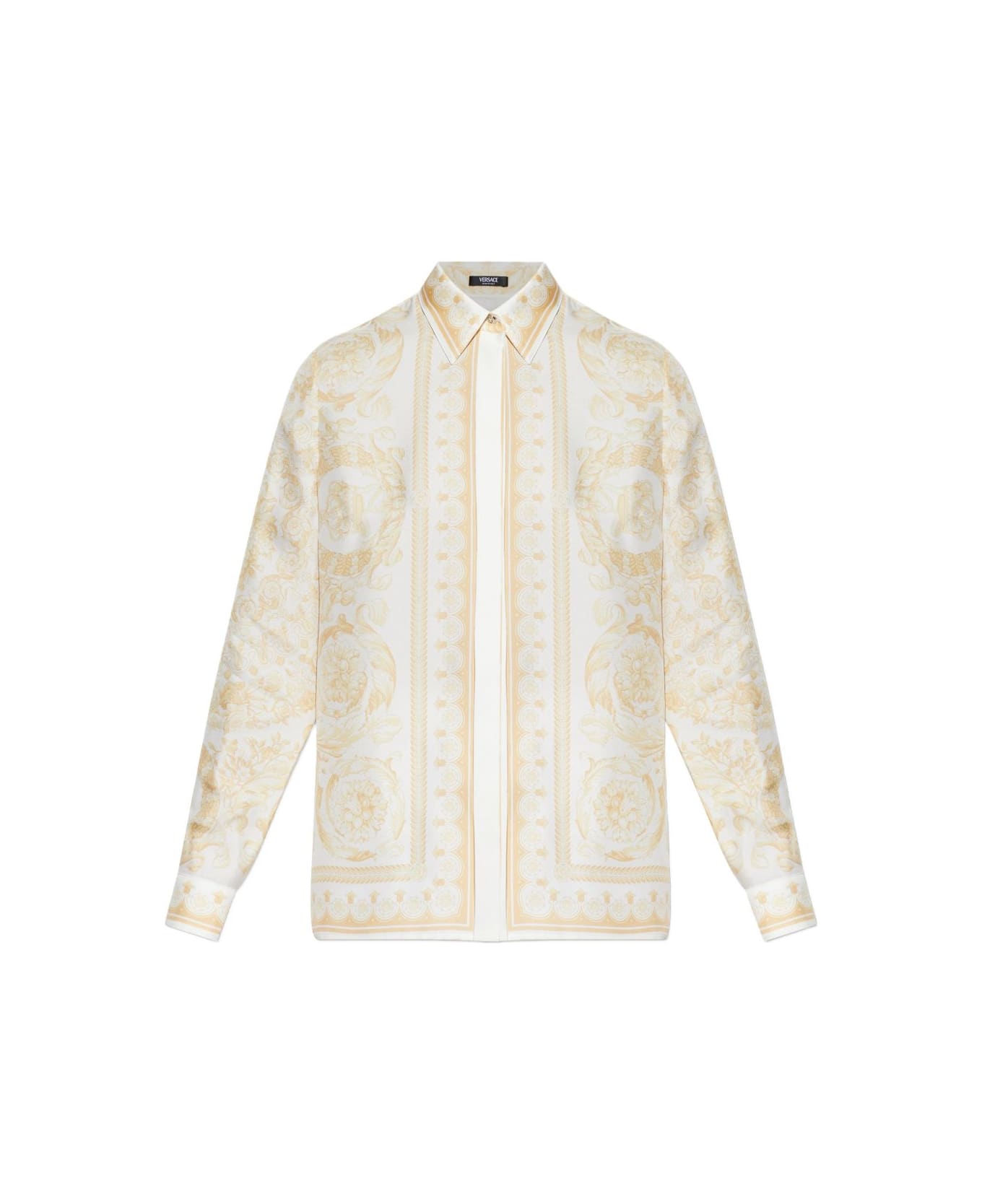 white and beige Barocco print Medusa hardware button fastening point collar long sleeves button cuffs Composition: Outer:, 100% Silk