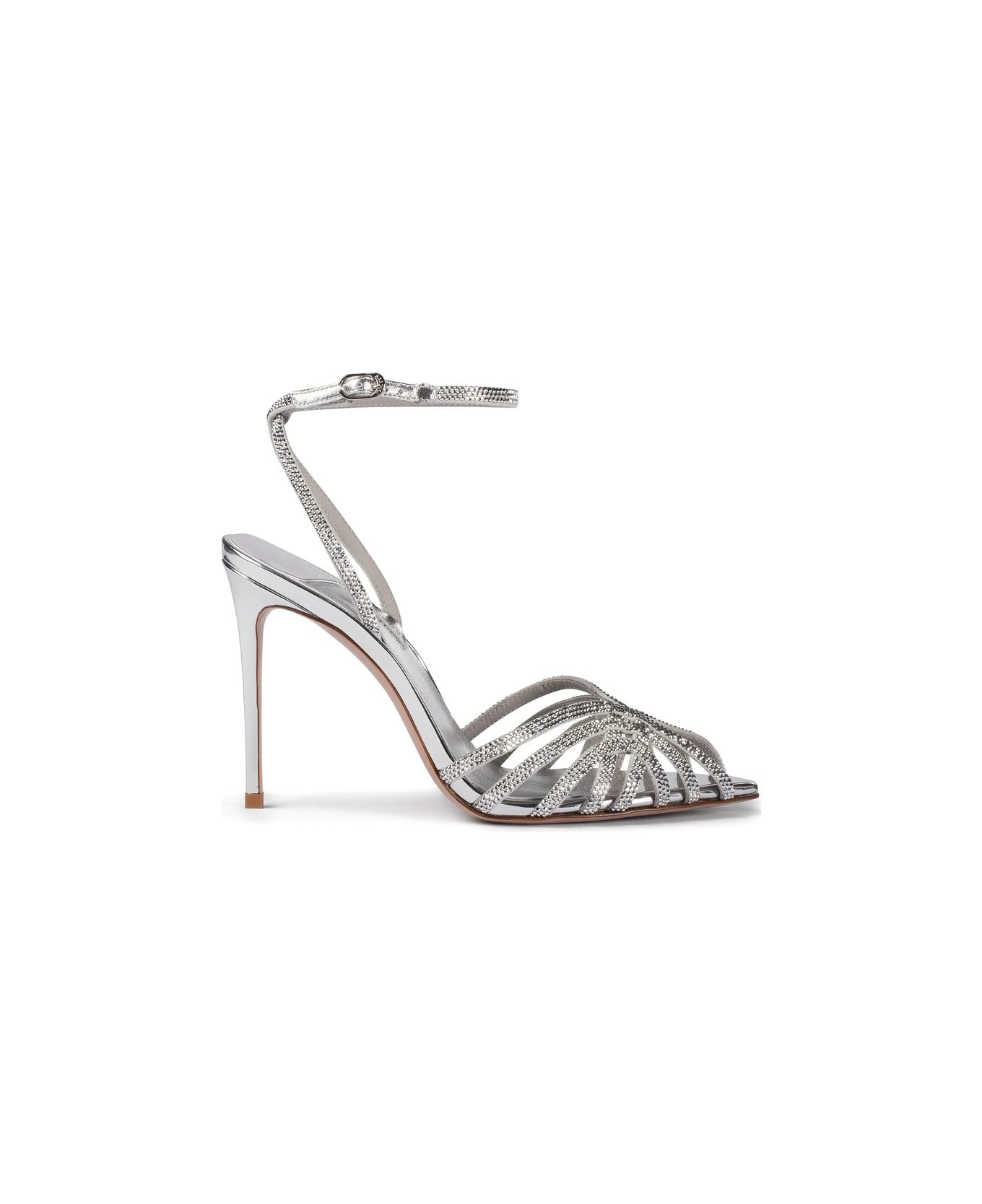 silver-tone side buckle fastening high stiletto heel uncaged design crystal embellishment