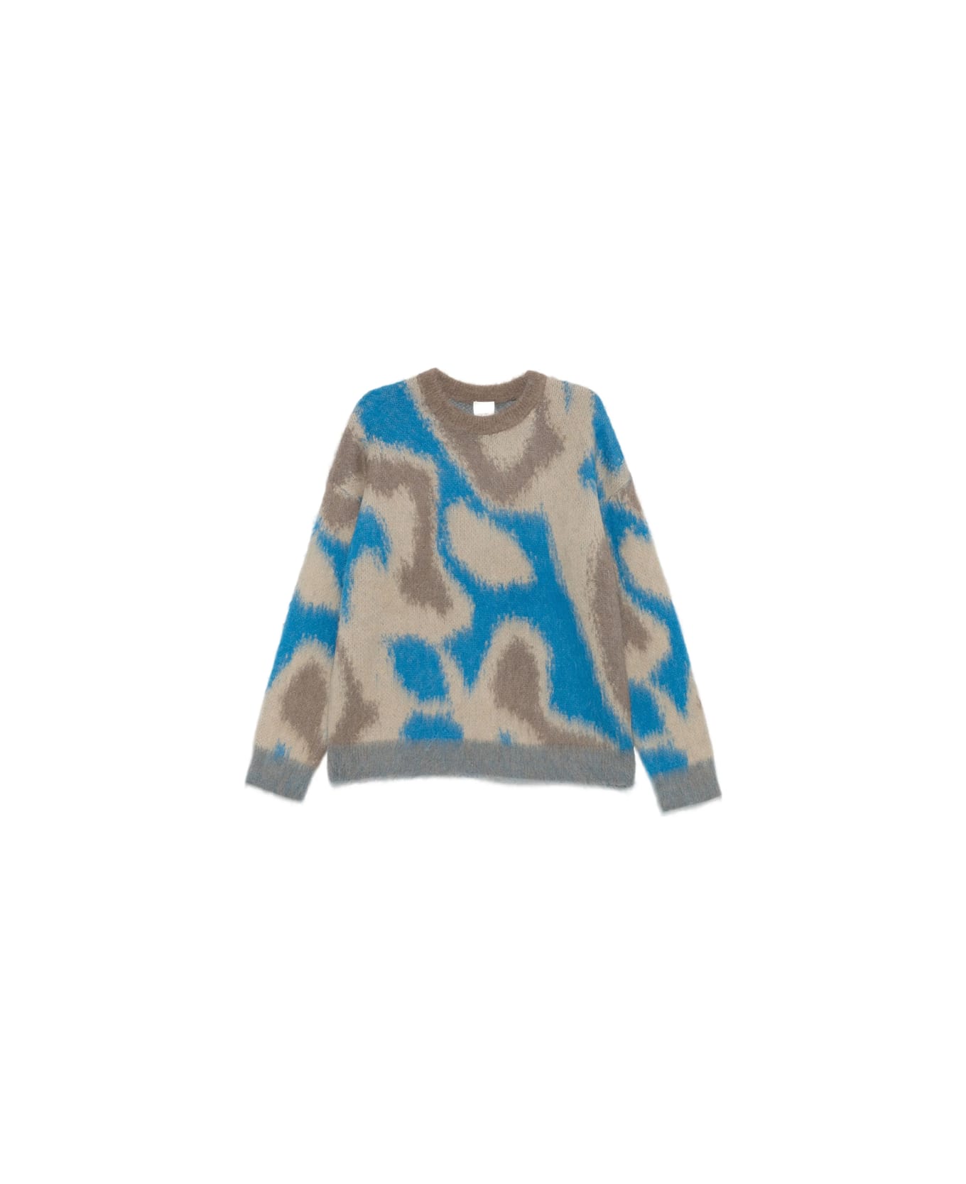 beige patterned crew neck long sleeves ribbed hem ribbed cuffs