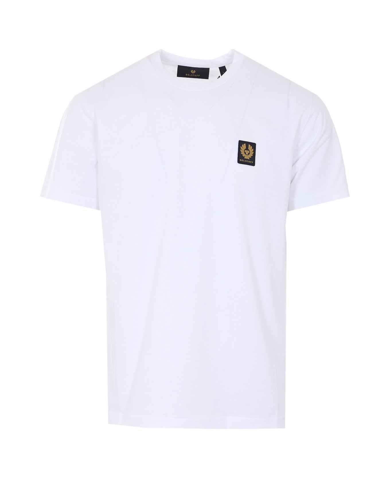 Belstaff white t-shirt, crewneck, patch logo on the front