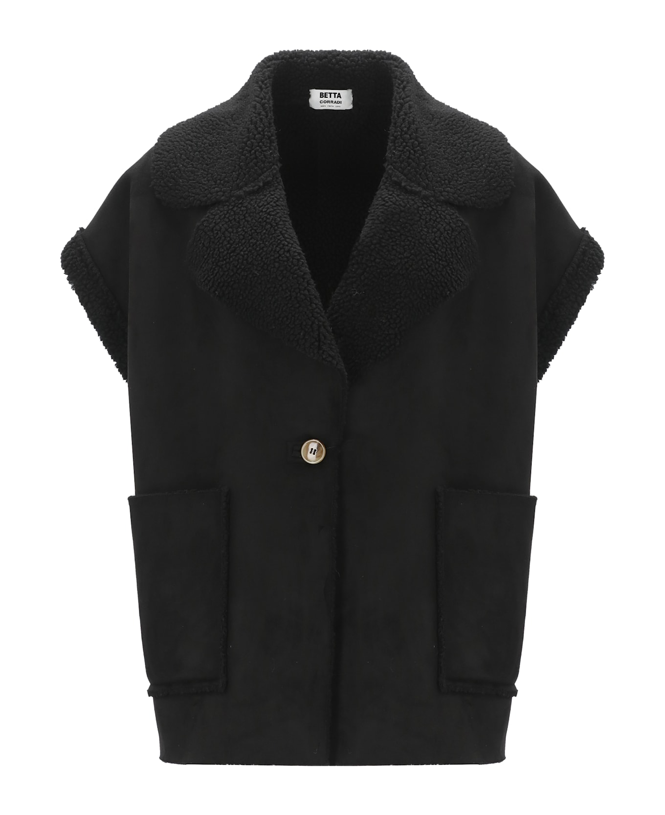 - Betta Corradi woman's black synthetic suede leather vest - Lapel collar - Front button fastening - Two front welt pockets - Teddy details