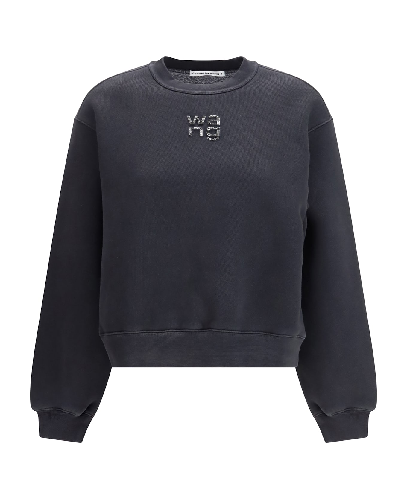 The crystal hotfix logo sweatshirt by alexander wang blends casual ease with a modern, luminous twist. featuring a relaxed fit with ribbed crewneck, cuffs, and hem, it is distinguished by a stacked embossed wang logo layered beneath a hotfix finish that adds a refined graphic shine. a piece that merges comfort and attitude, designed to elevate everyday wear with the brand s signature edge.