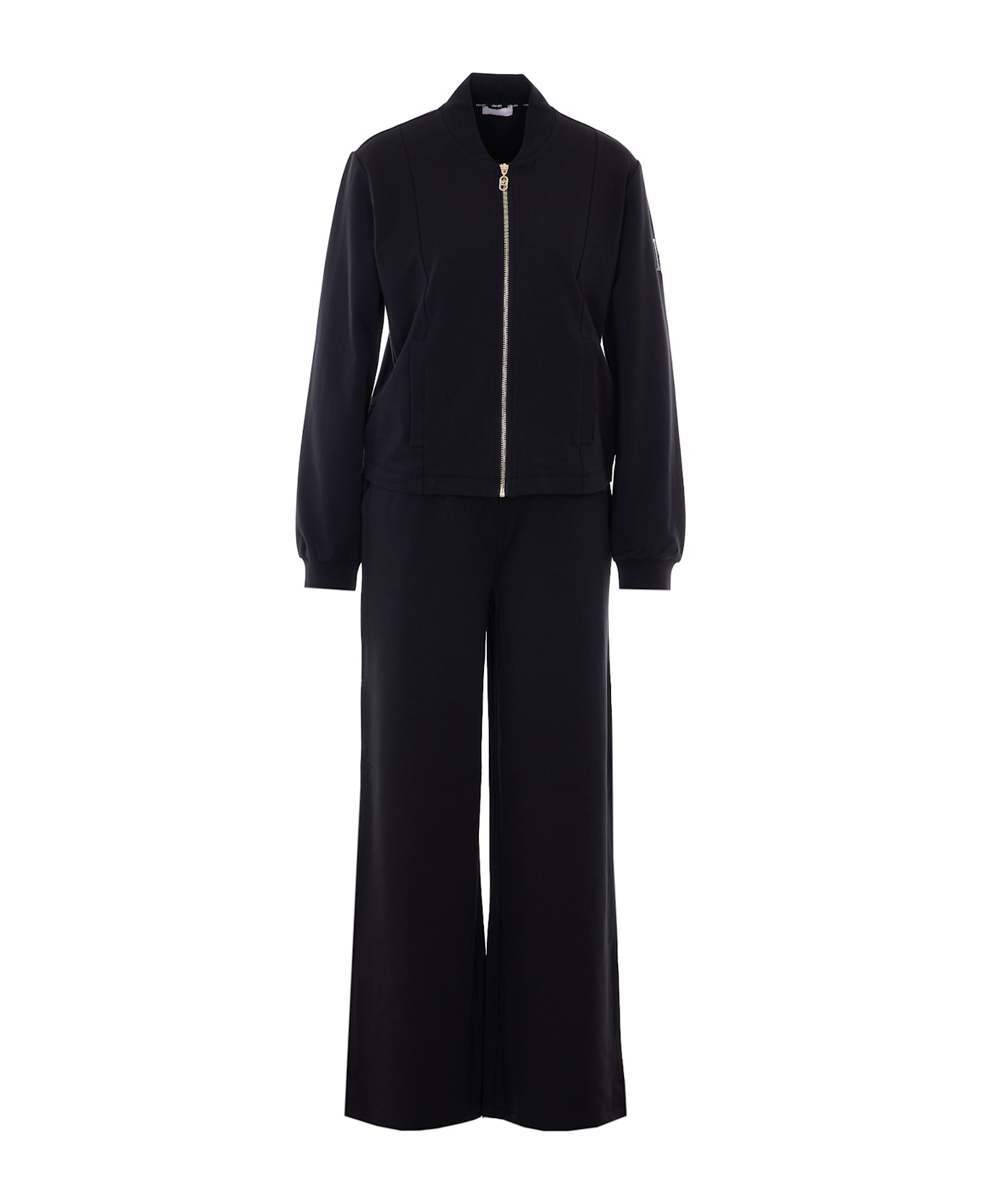 Liu Jo black suit, sweatshirt with zip closure, long sleeves, lateral pockets, strass logo on side, crewneck, pants, lateral pokets Composition: 95% Cotton, 5% Elastane, 100% Cotton
