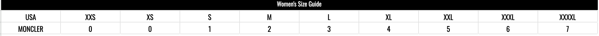 Moncler Size Chart