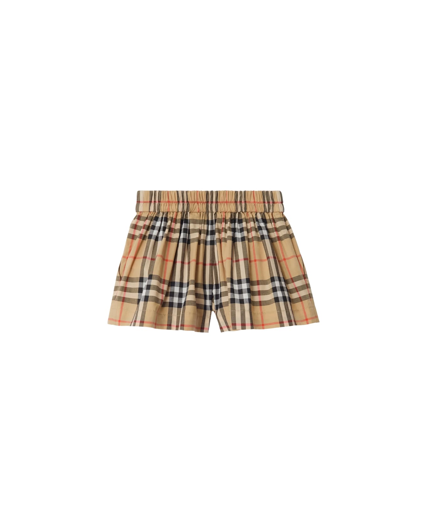beige check pattern gathered waist side slip pockets elasticated waistband wide leg