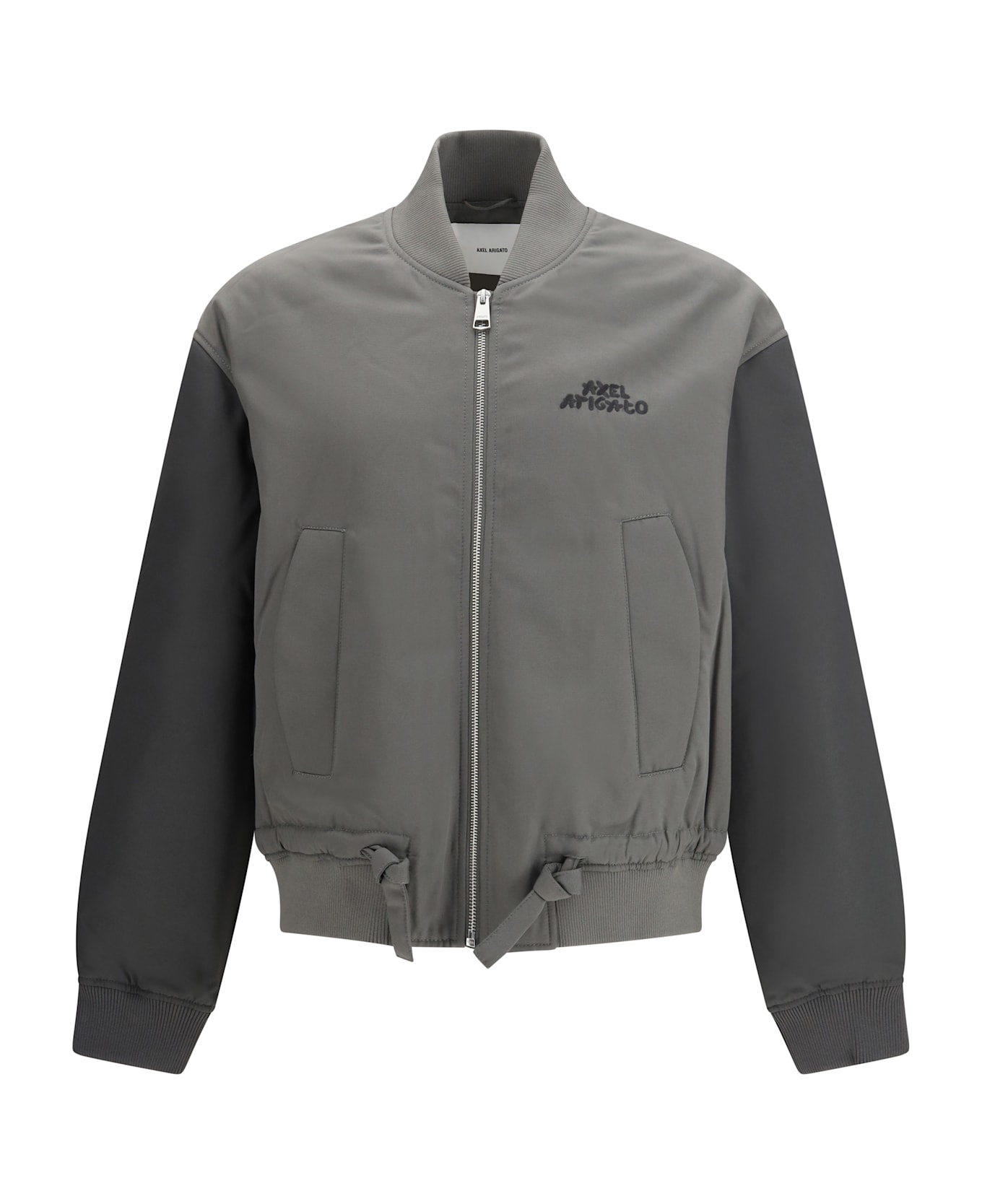 The bomber jacket archer by axel arigato is a versatile and functional garment, designed for an urban-chic look. the ribbed collar, together with the ribbed cuffs and hem, ensures a comfortable and structured fit. the drawstring hem allows you to adjust the fit to suit your needs. the two side slit pockets with snap closures, together with the additional inside pocket, provide practicality and security for storing your accessories. the logo stitched on the front completes the design, adding a distinctive and modern touch.