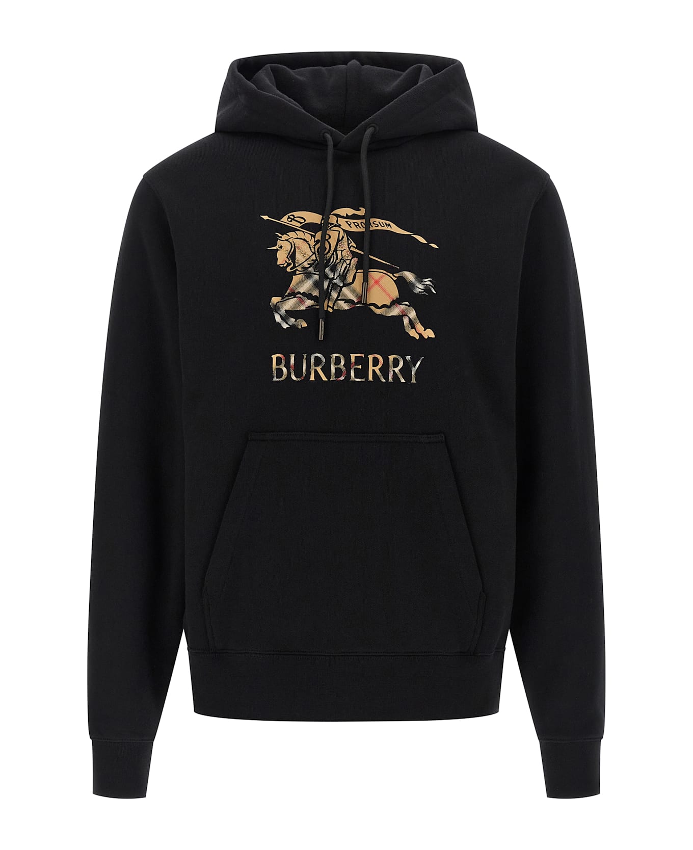 'Simon' lightweight cotton terry hoodie with shaded Burberry Check 'Equestrian Knight Design' print, kangaroo pocket, long cuffed sleeves. Composition: 100% cotton