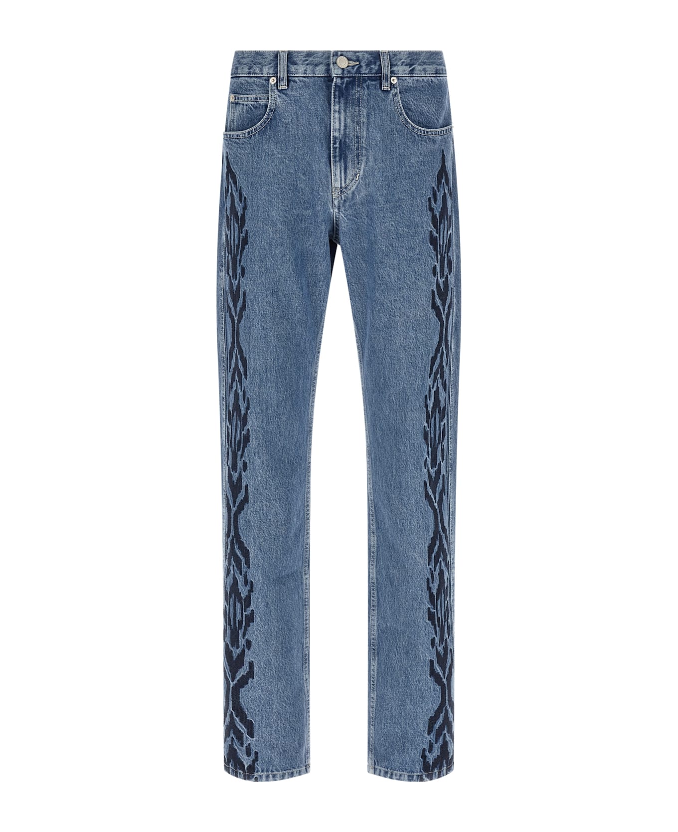 'Lewys' cotton denim jeans with contrasting graphic embroidery on the sides, contrast stitching, straight leg, front zip and button closure, five pockets, and leather logo label at the back. Composition: 100% cotton