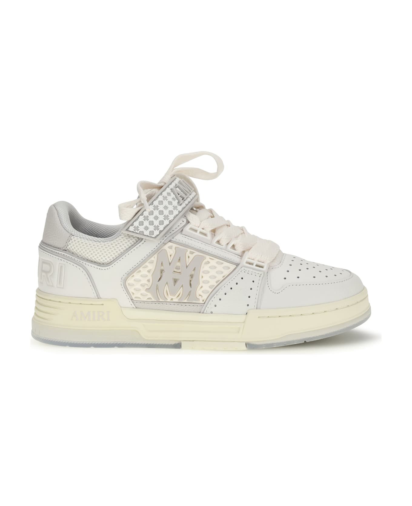 The ma skyline sneakers by amiri fuse streetwear energy with luxury craftsmanship, creating a bold and modern look. with their unmistakably contemporary silhouette, they reflect the perfect combination of the brand's signature assertive attitude and meticulous design. the lace-up and velcro closure ensures practicality and comfort, while the logo details and rubber sole complete the look, offering the perfect balance of urban style and high quality. a model that stands out for its uniqueness and cutting-edge spirit.