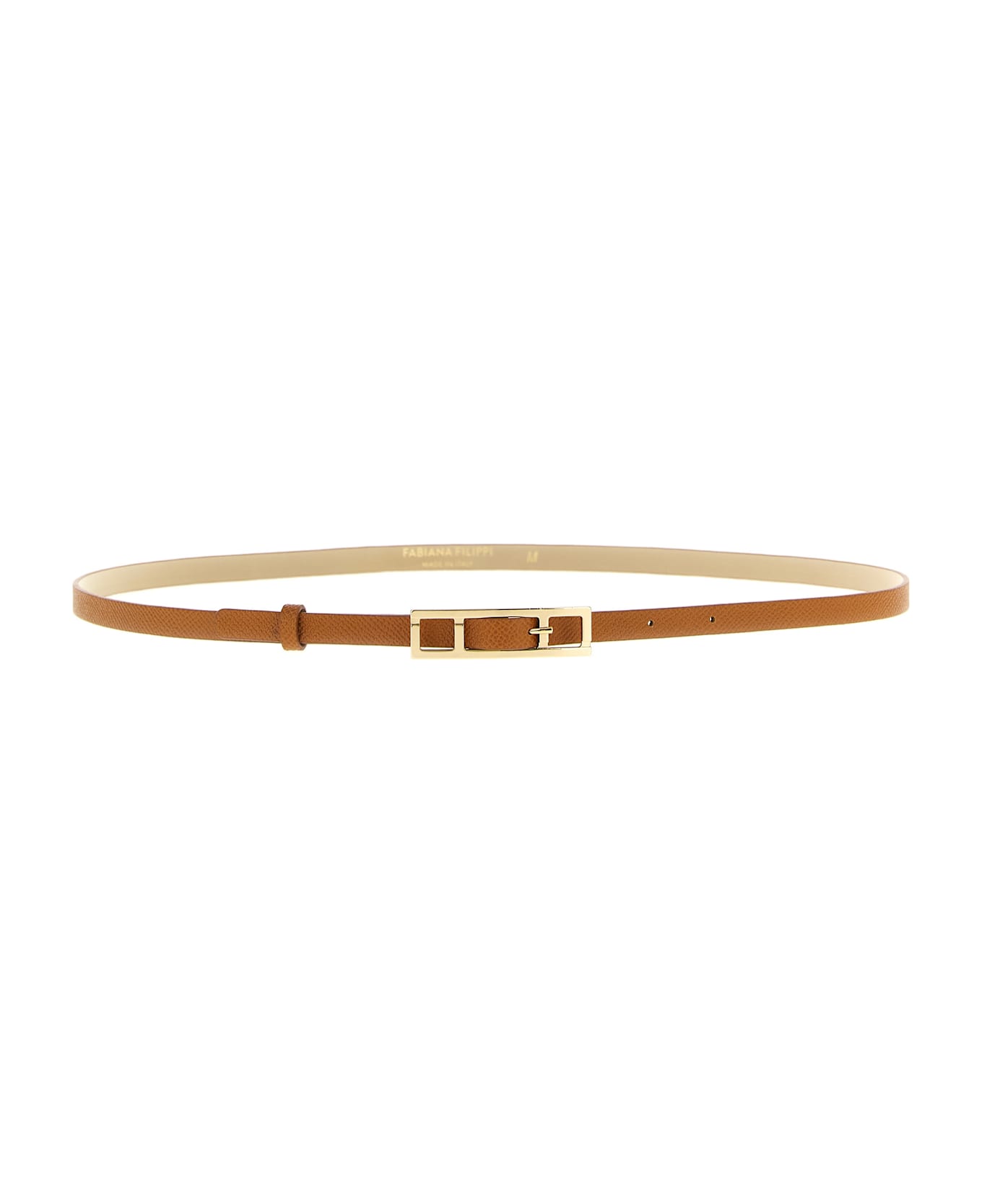 Adjustable leather belt with metal buckle. Composition: 100% calfskin leather (Bos Taurus)