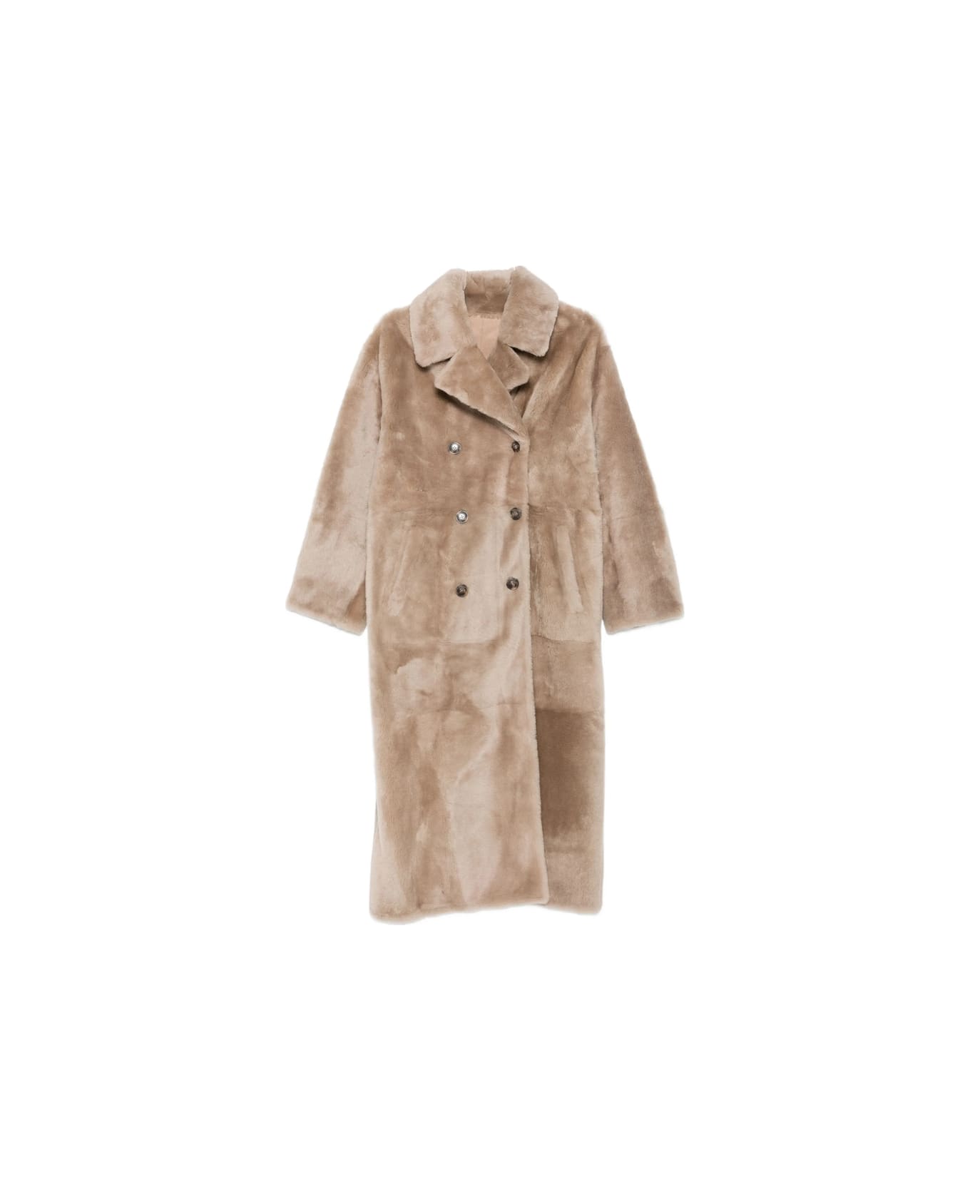 beige double-breasted button fastening notched lapels front pockets long sleeves