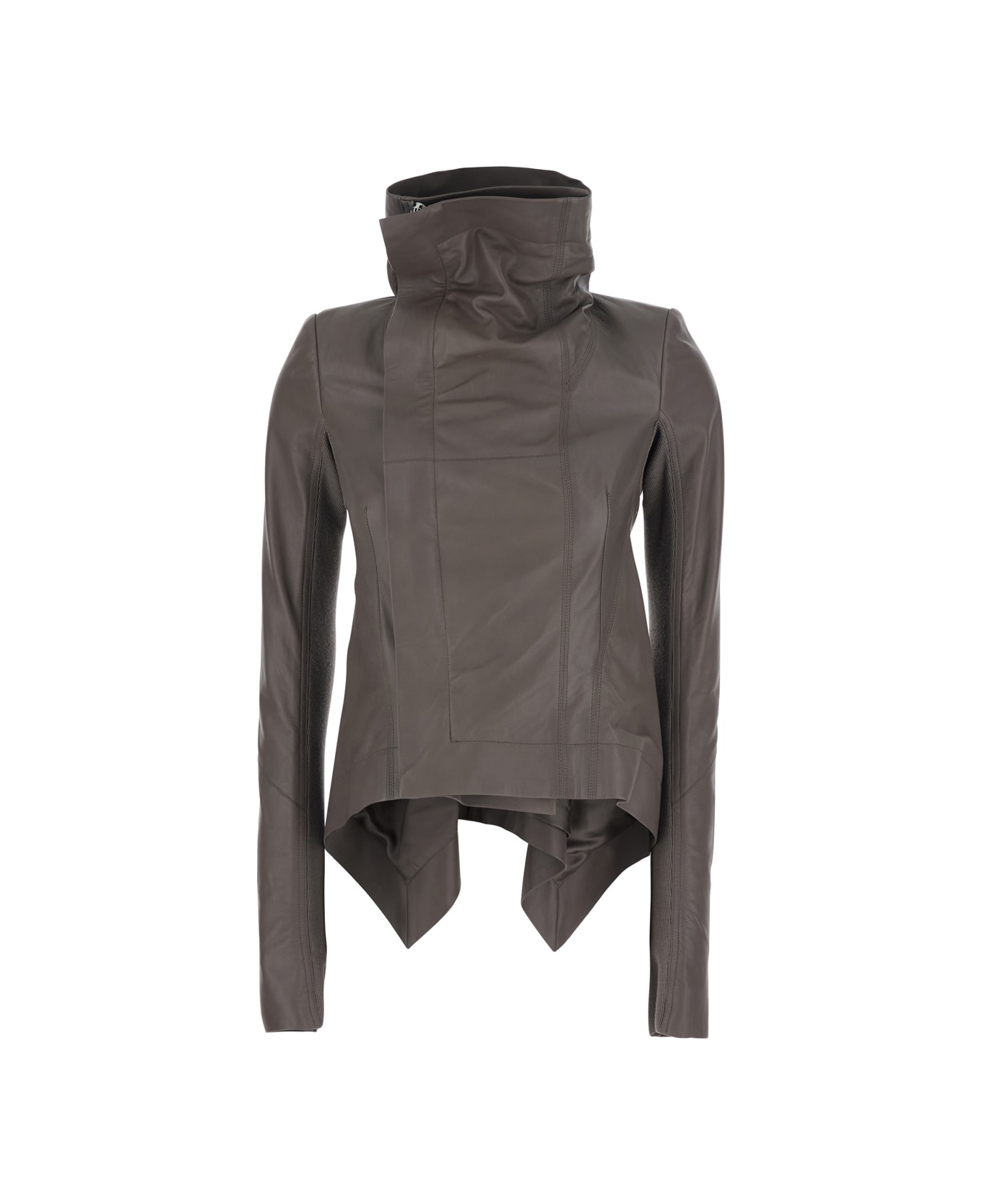 Jacket Grey Oversize high neck Long sleeves Front zip closure Asymmetric hem Leather Regular fit