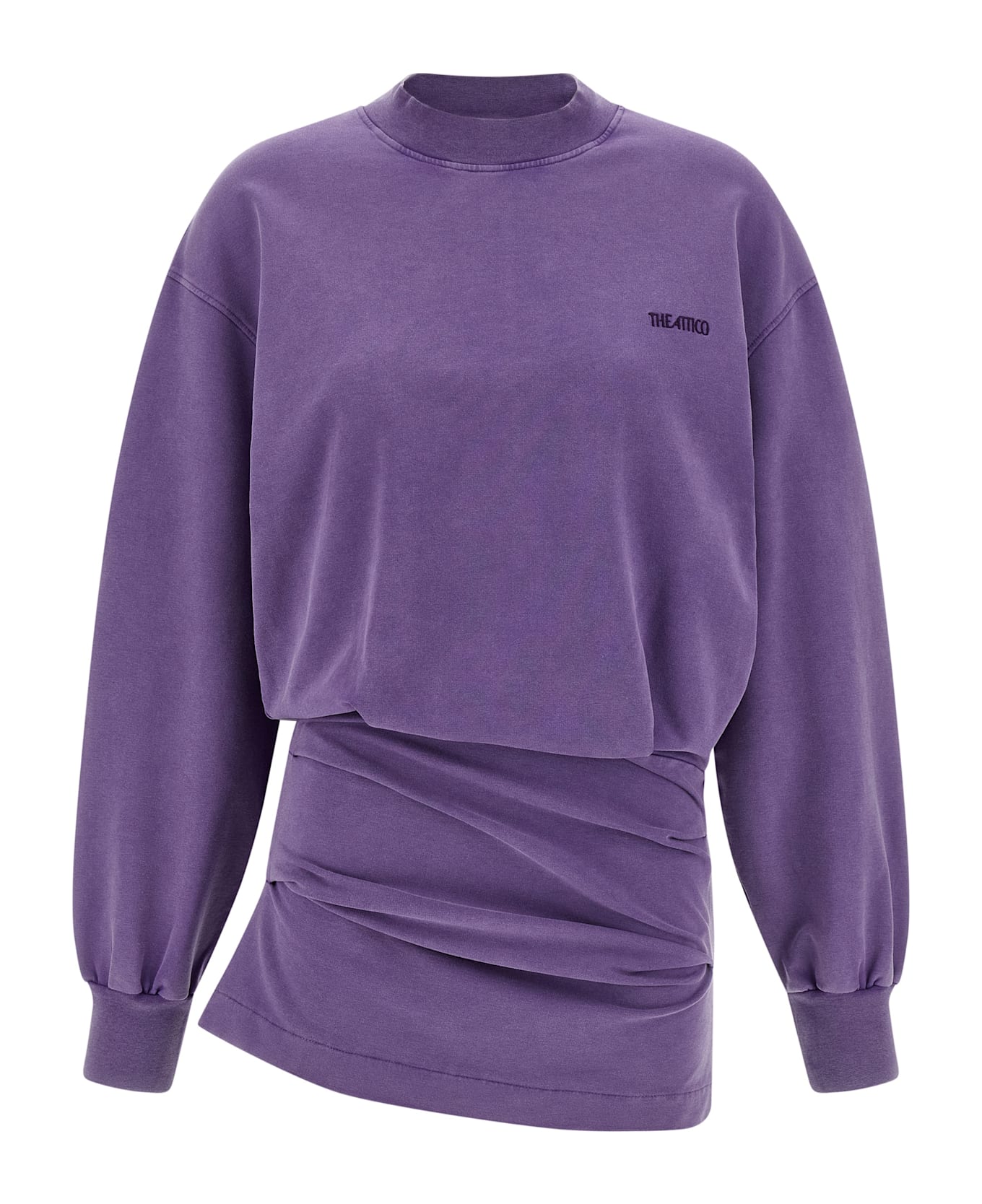 Mini dress in light American fleece faded, consisting of oversized sweatshirt top and mini skirt with draping, tone-on-tone logo embroidery on the front, crew neck, long wide sleeves with cuffs and dropped shoulder. Composition: 96% cotton, 4% elastane