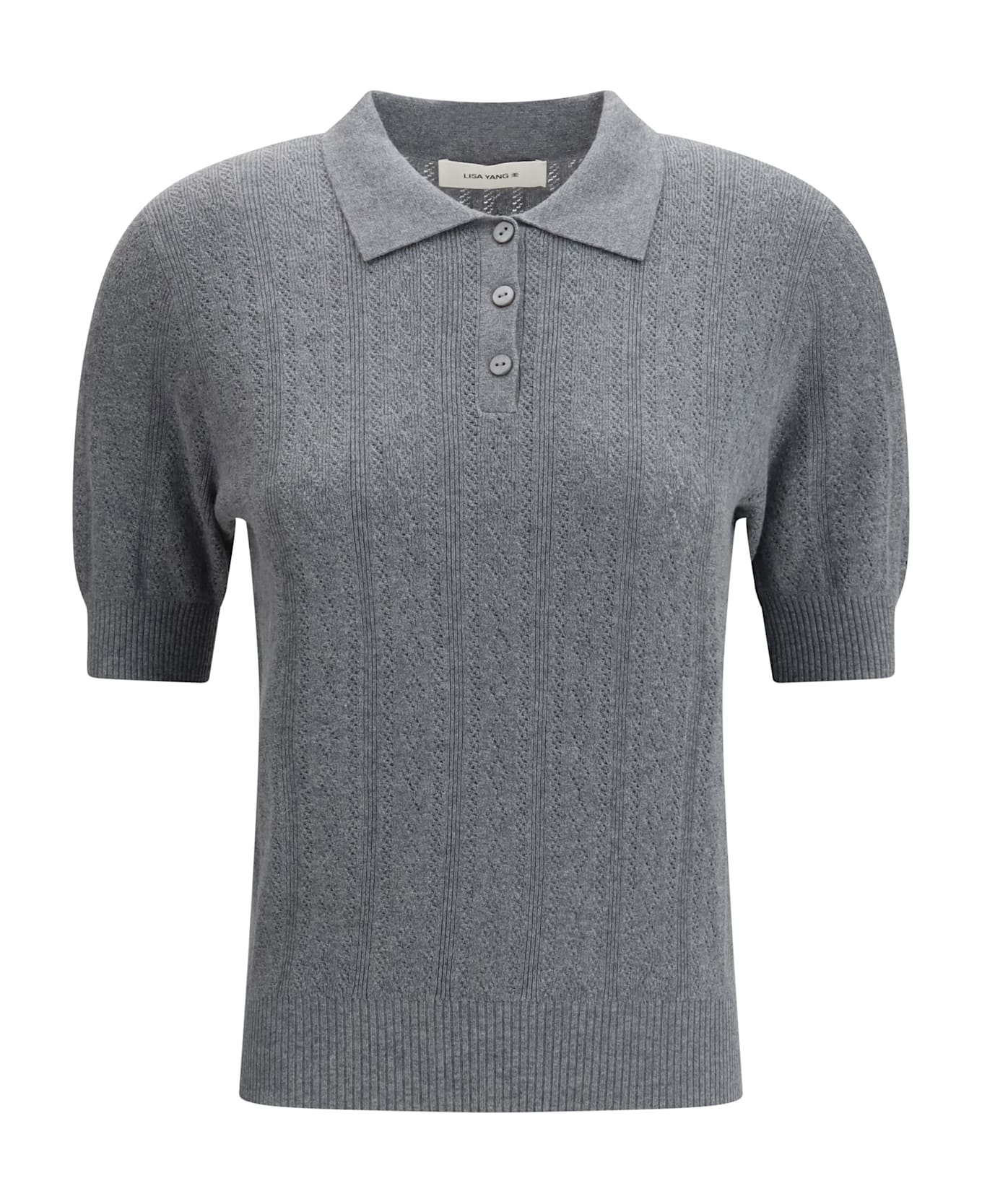 The cristine polo shirt by lisa yang is crafted from a soft and refined cotton-cashmere knit, featuring a clean silhouette inspired by scandinavian minimalism. designed with a front button closure and ribbed trims at the hem and collar, it showcases the brand s understated elegance. a comfortable and sophisticated piece, ideal for elevating both casual and polished outfits.