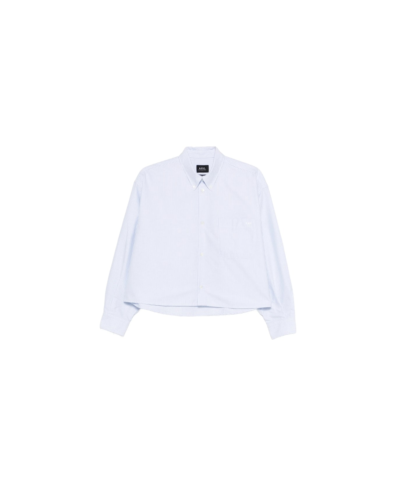 light blue striped design button fastening chest pocket long sleeves buttoned cuffs
