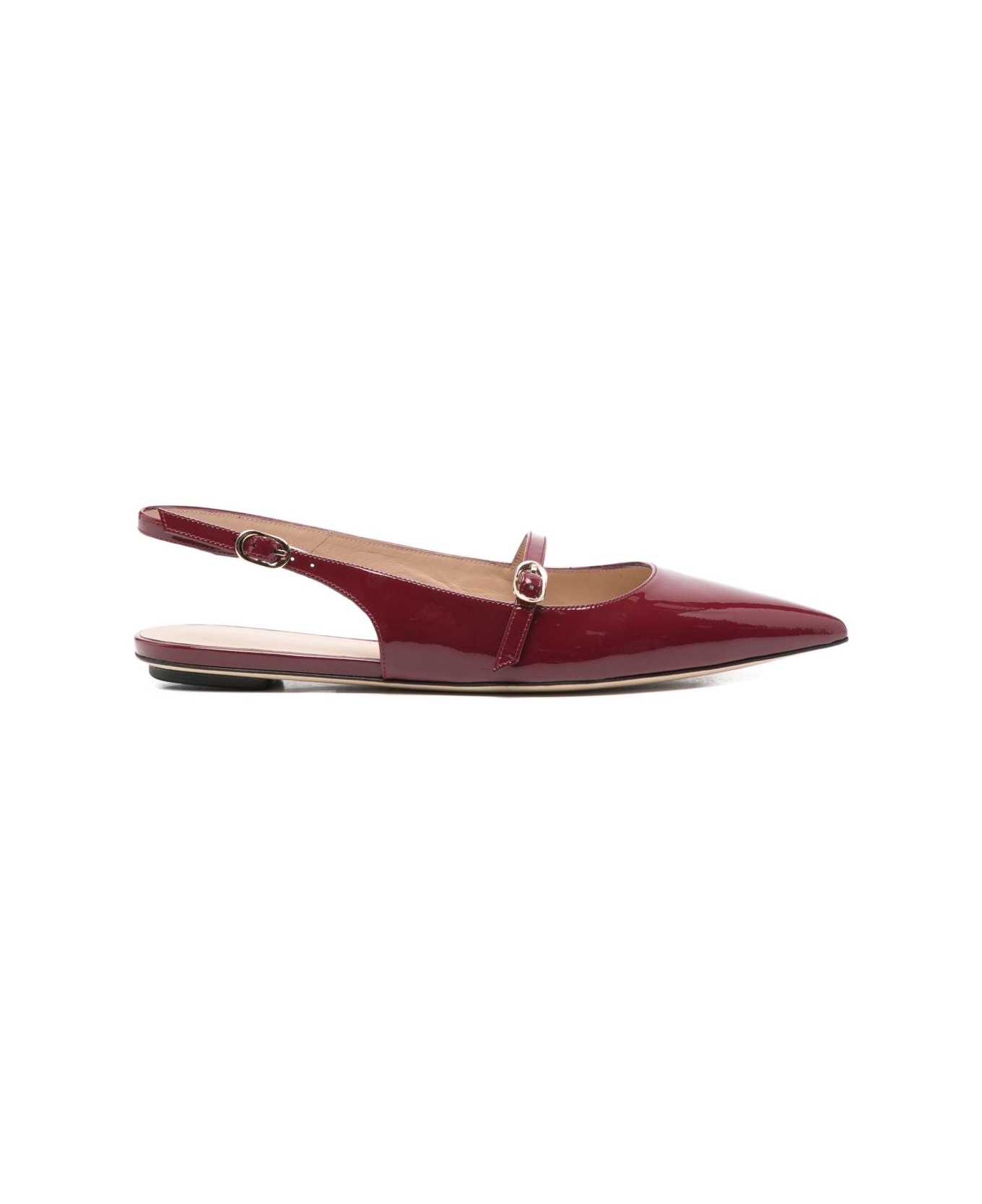 Stuart Weitzman Burgundy calfskin ballerina flat, buckled back strap, pointed toe
