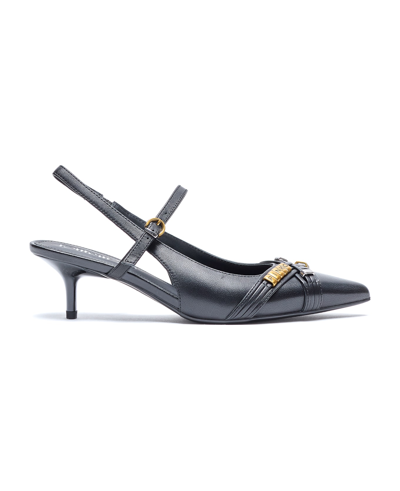 Pinko black Gloria slingback, pointed toe, lateral buckle closure, leather upper