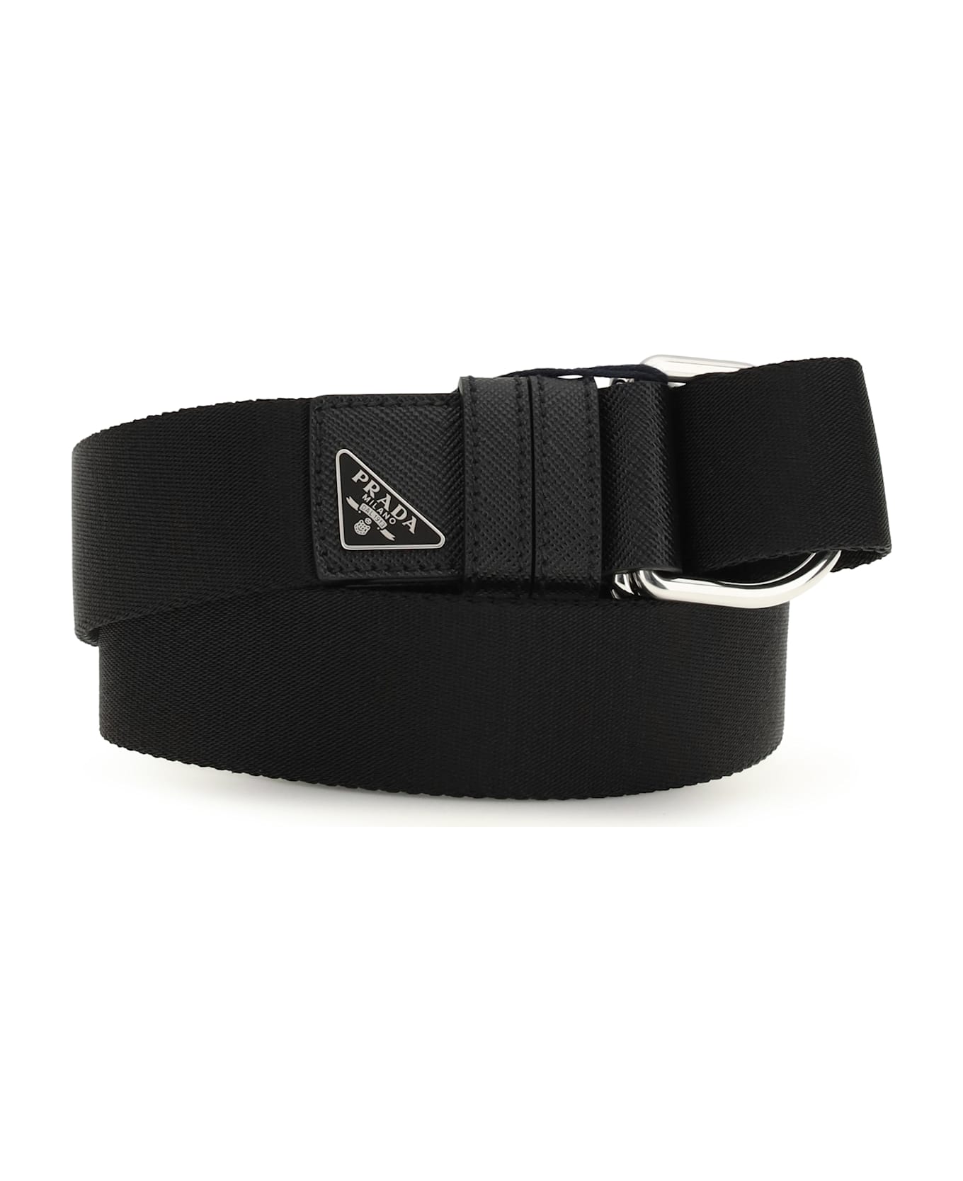 The re-nylon belt by prada is a modern and versatile accessory made from durable nylon. the double ring buckle adds a touch of originality, while the enameled metal triangle logo adds a distinctive touch of class. perfect for completing casual or more sophisticated looks, this belt combines contemporary style and sustainability thanks to the use of re-nylon material. an innovative and functional interpretation of the classic accessory.