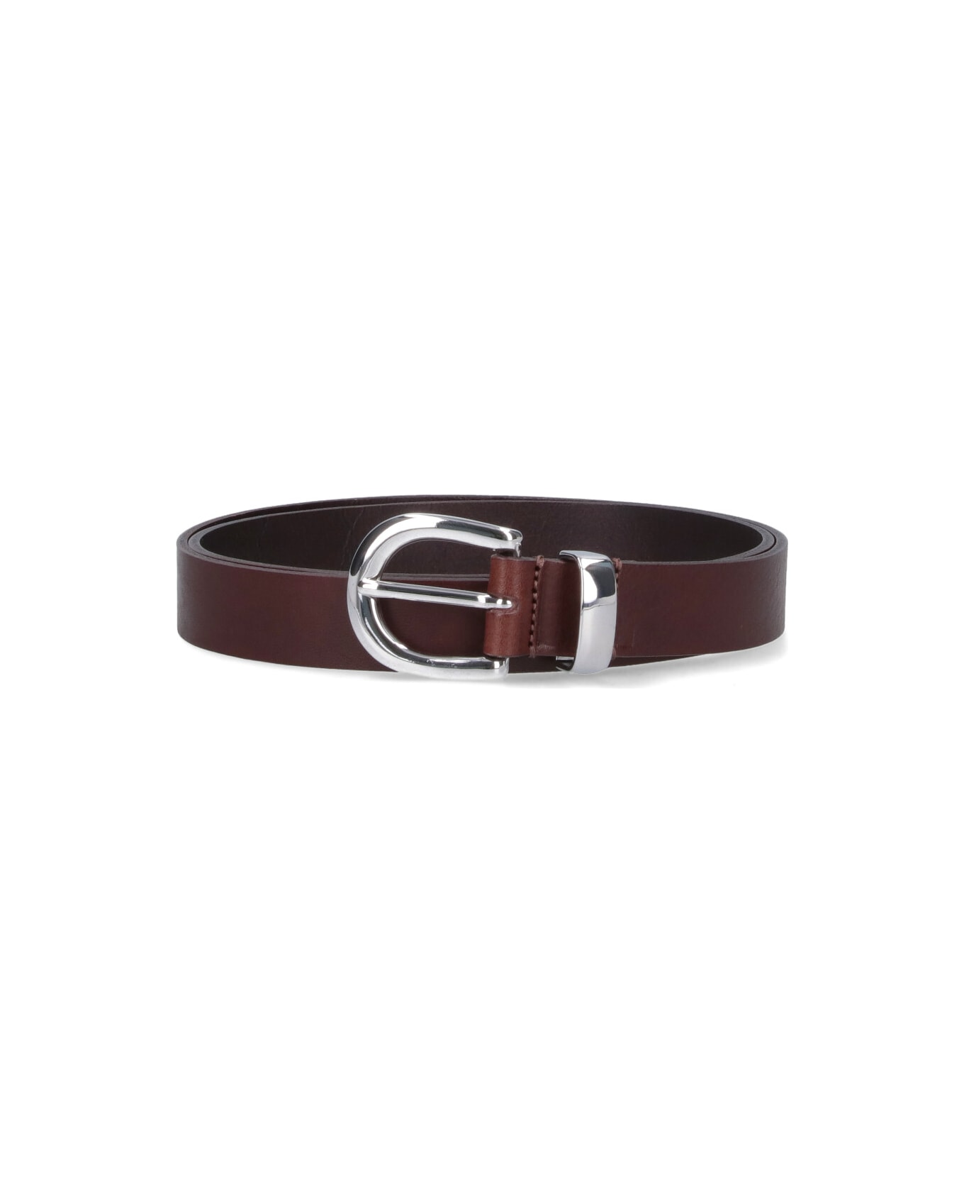 Sunflower Simple belt in brown leather with silver metal buckle on the front, adjustable.