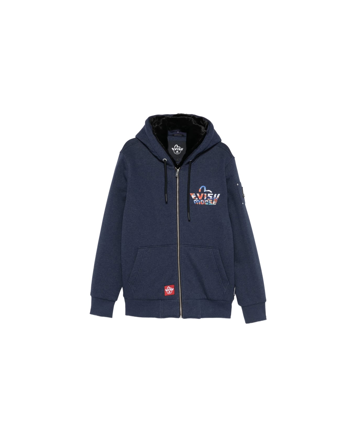 blue zip fastening hood long sleeves ribbed hem patch detail