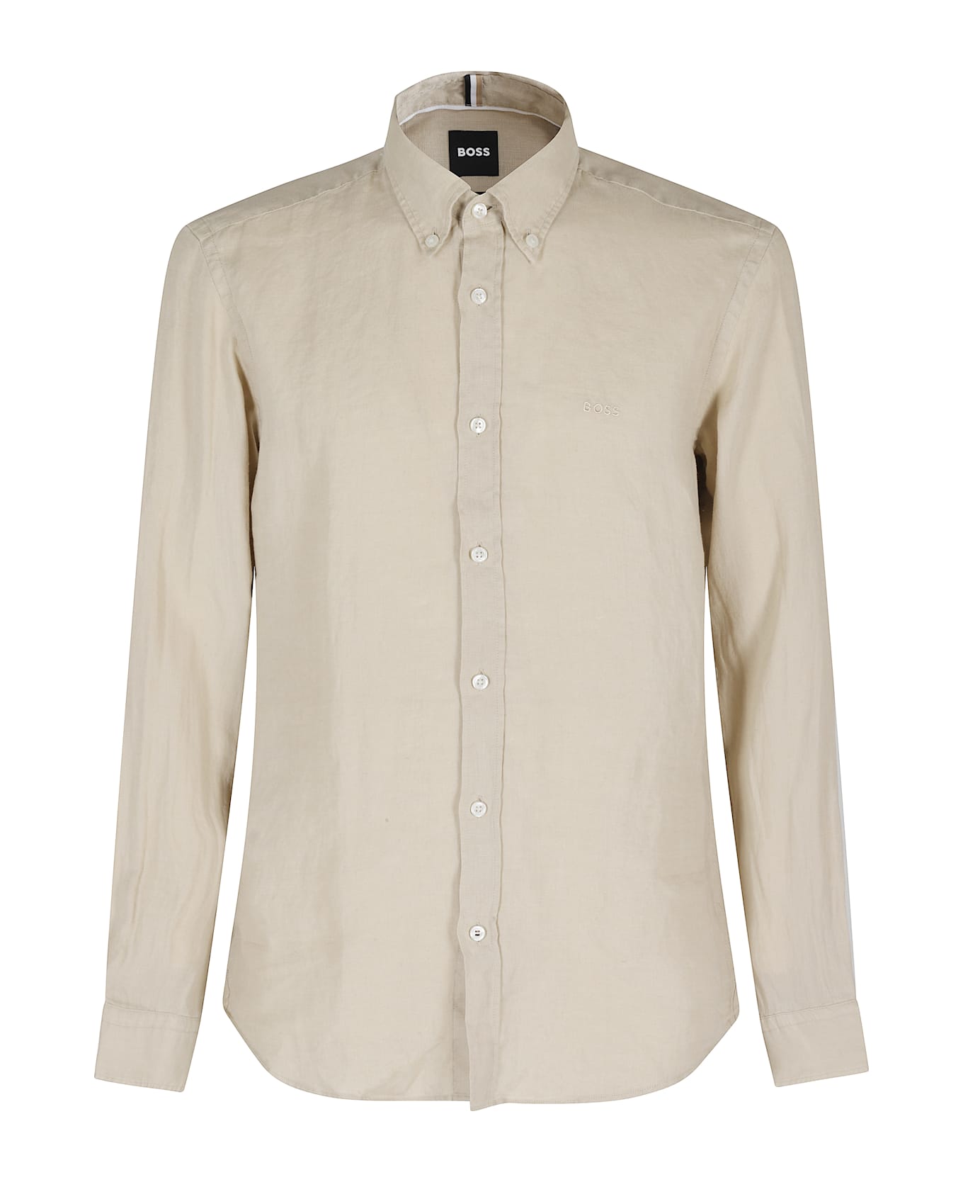 Shirt - Boss - Beige color - H roan pattern - Long sleeves - Embroidered tone on tone upper logo - Front button closure