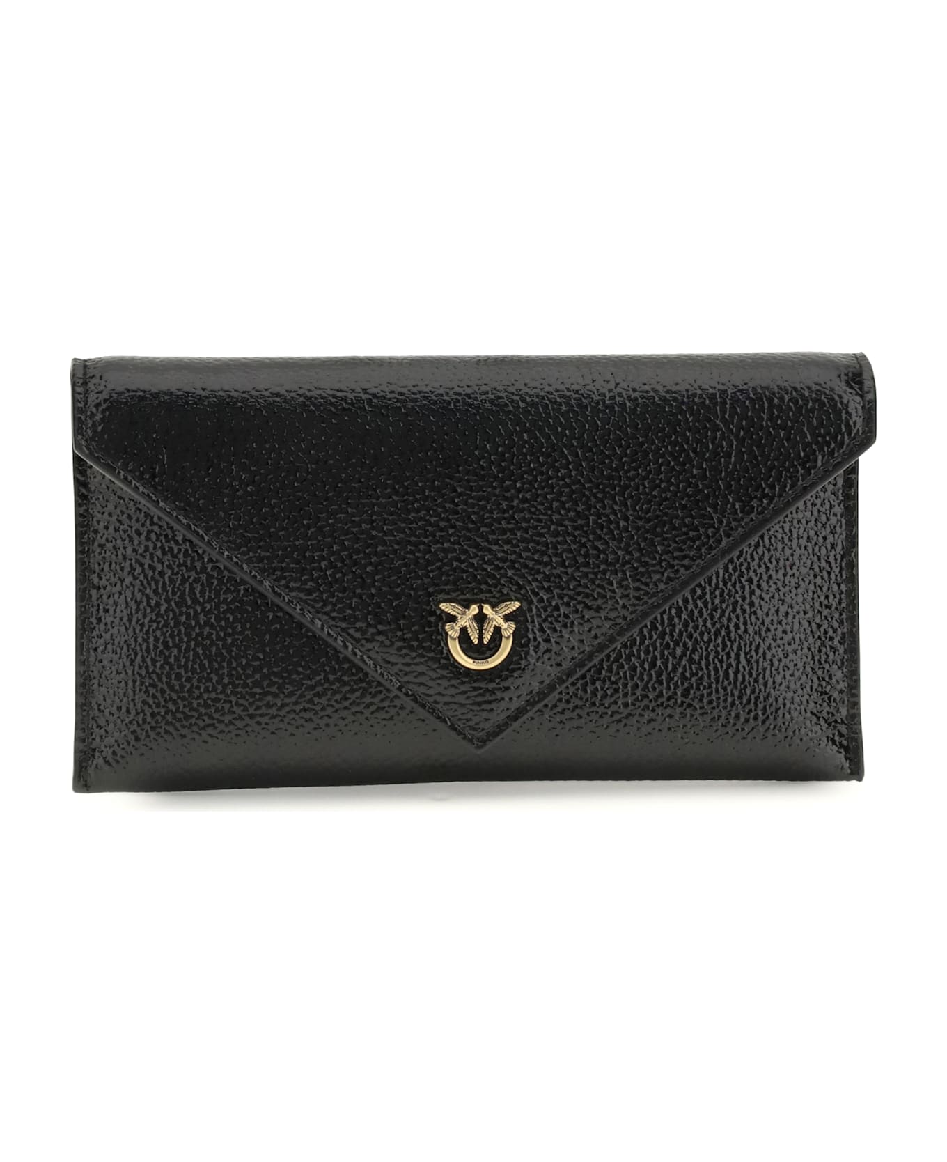 The love birds clutch bag by pinko is a flat pouch in soft leather that is both elegant and versatile. the removable chain strap enhances its practicality, while the iconic love birds detail in antique gold electroplating gives the design the brand's distinctive and recognizable character.