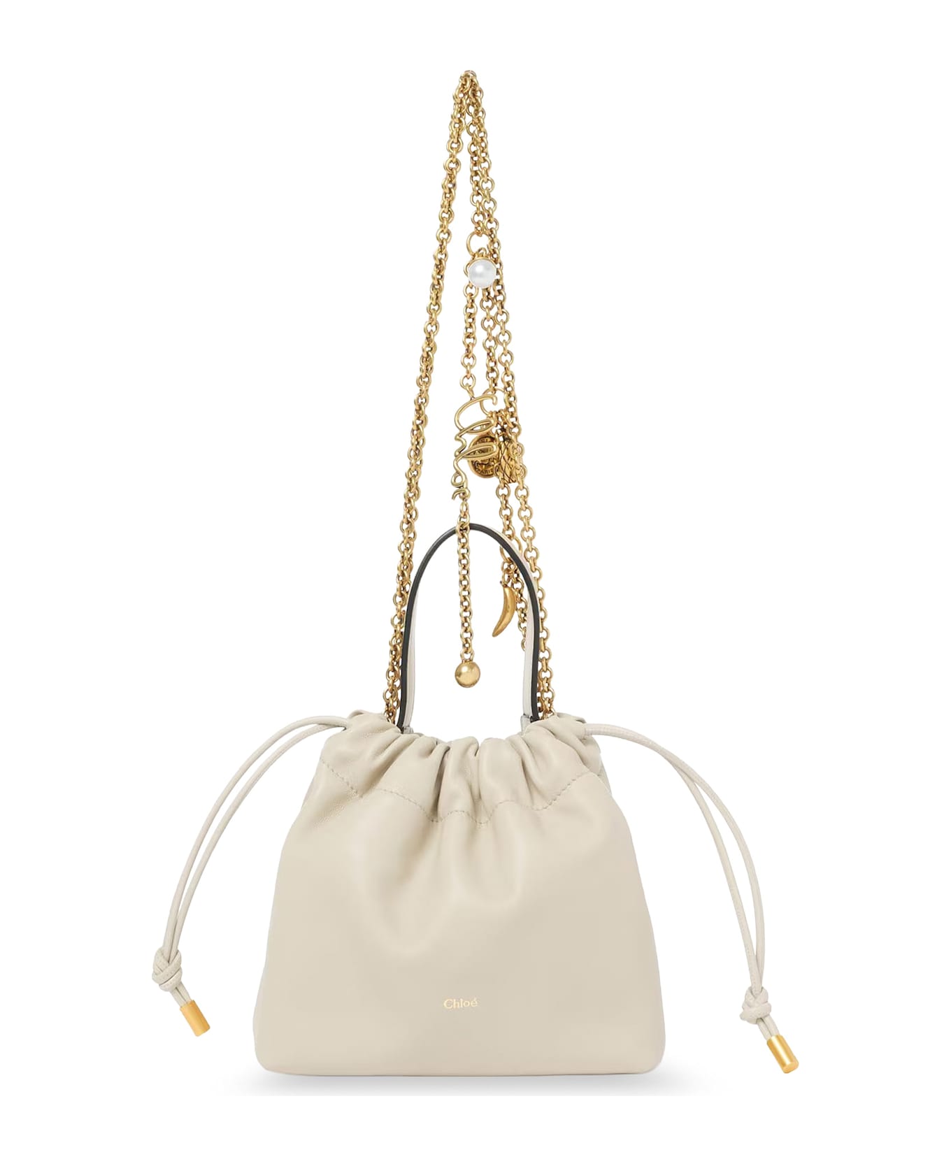 Leather handle Drawstring closure Lettering logo on the bottom Removable and adjustable metal shoulder strap Metal charm details Made in Italy Leather W: 17 cm, H: 16 cm, D: 8 cm SKU:CH26SP126R1220S
