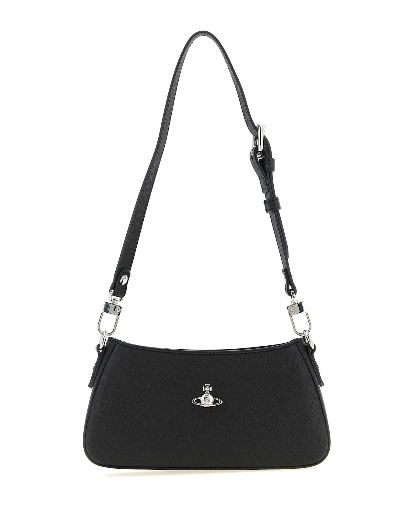 'Tasha' metallic PU shoulder bag with Saffiano finish, metal 'Orb Bas Relief' logo on the front, top zip closure, adjustable and removable handle, cotton lining. Composition: 65% polyurethane, 35% cotton