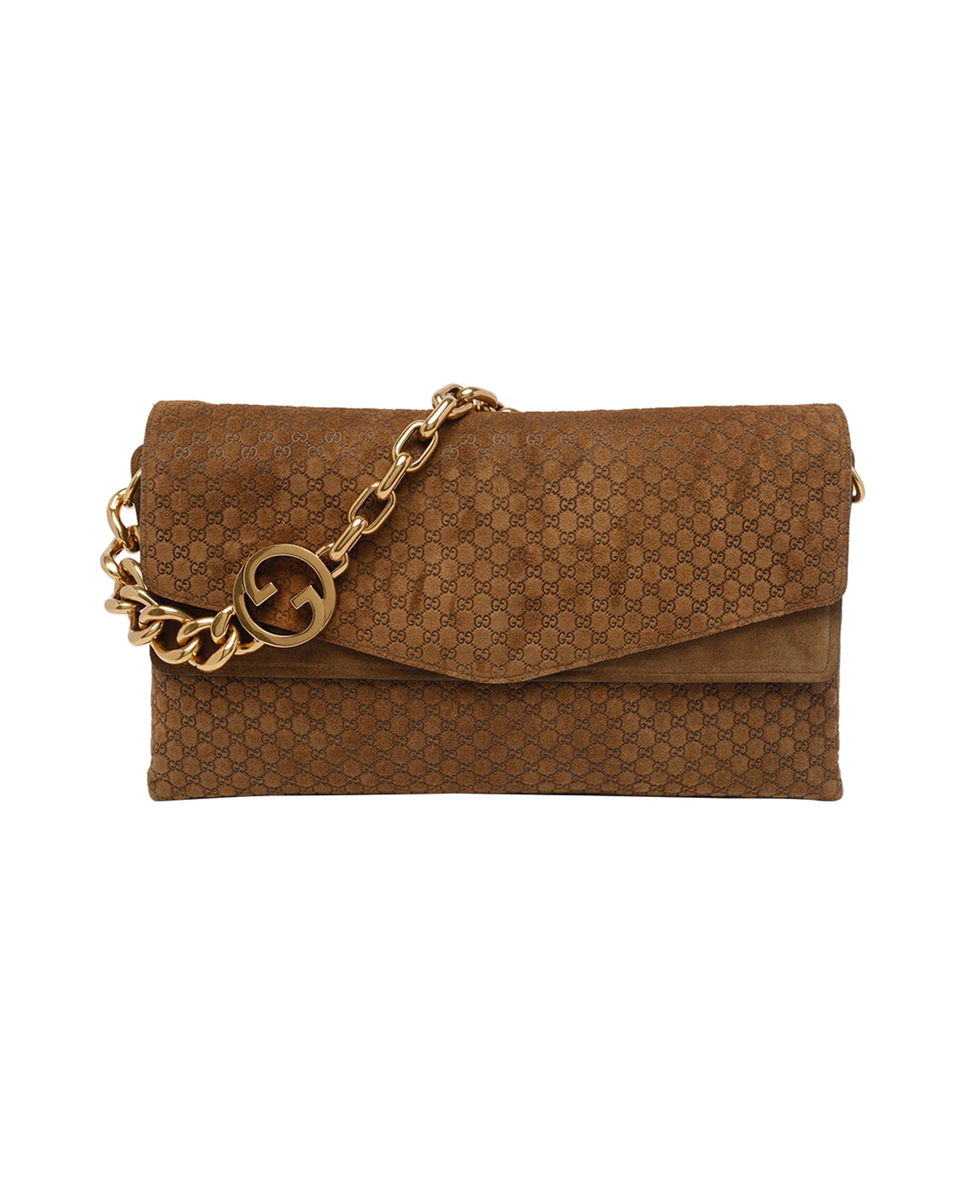 Gucci pepper brown Big GG Chain shoulder bag, magnetic closure, inner open pocket, external magnetic pocket, chain strap, suede model, removable suede strap, tone on tone GG allover Composition: 100% Calf Leather
