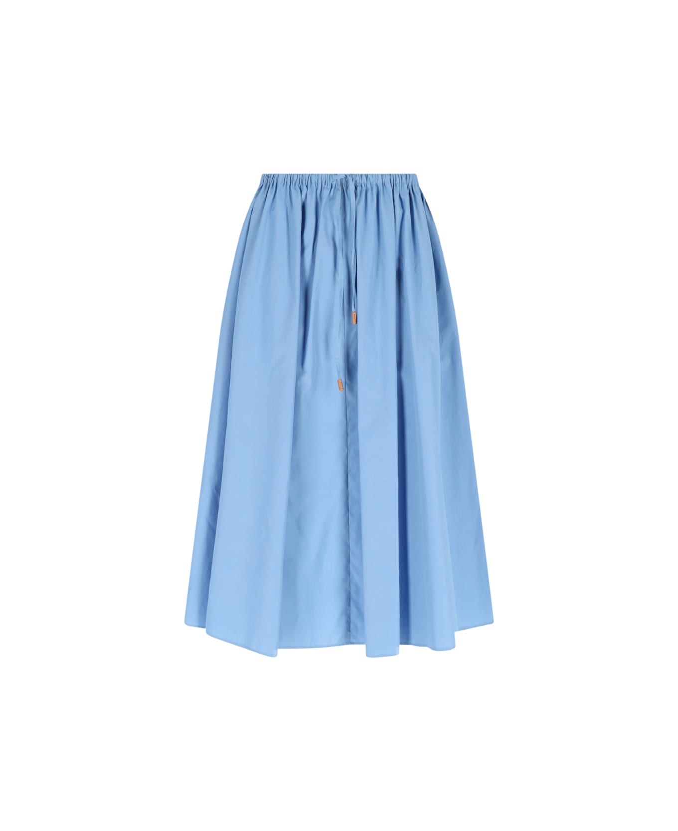 Marni midi skirt in light blue cotton with medium elastic waistband, adjustable drawstring at the waist, two side pockets, straight hem. Composition: 100% Cotton