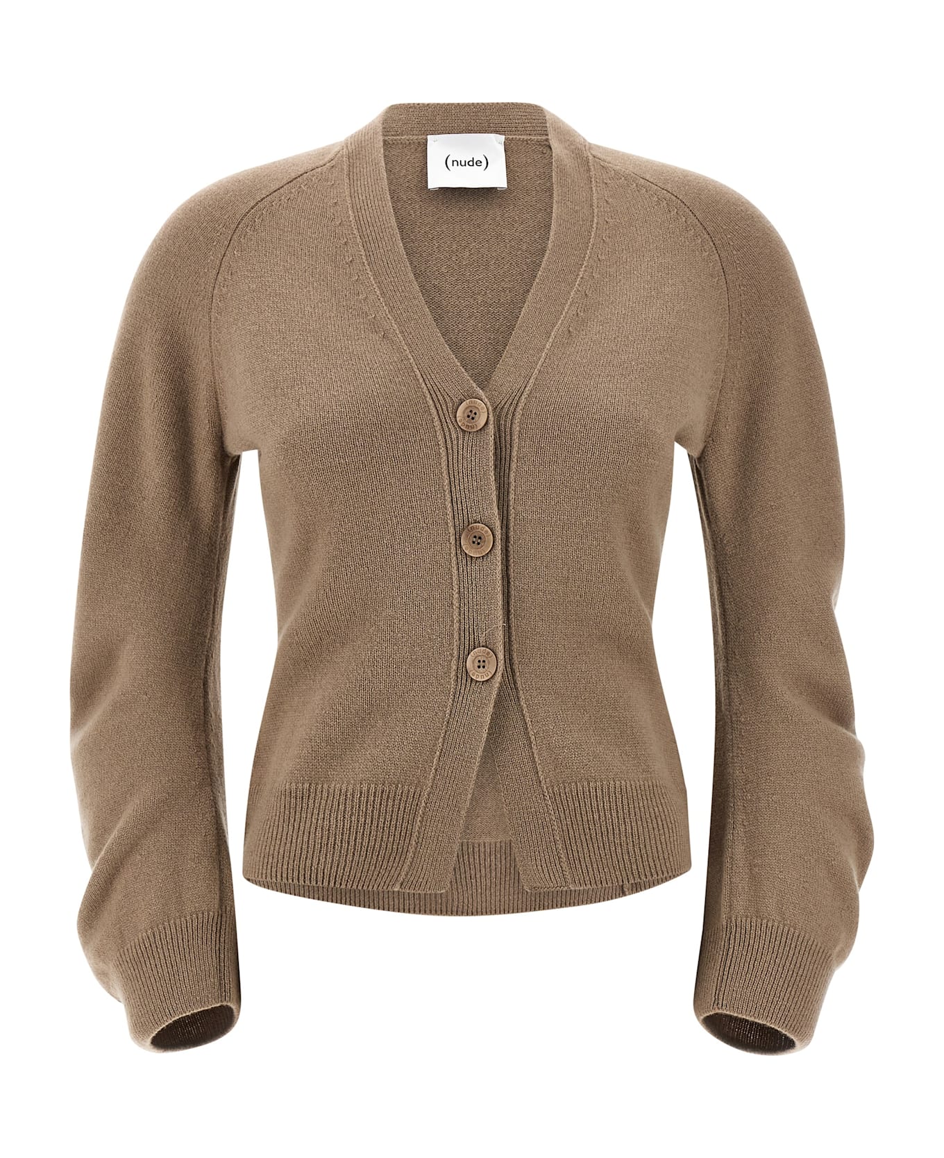 Virgin wool cardigan with V-neck, front button closure, long cuffed sleeves and a curved silhouette.