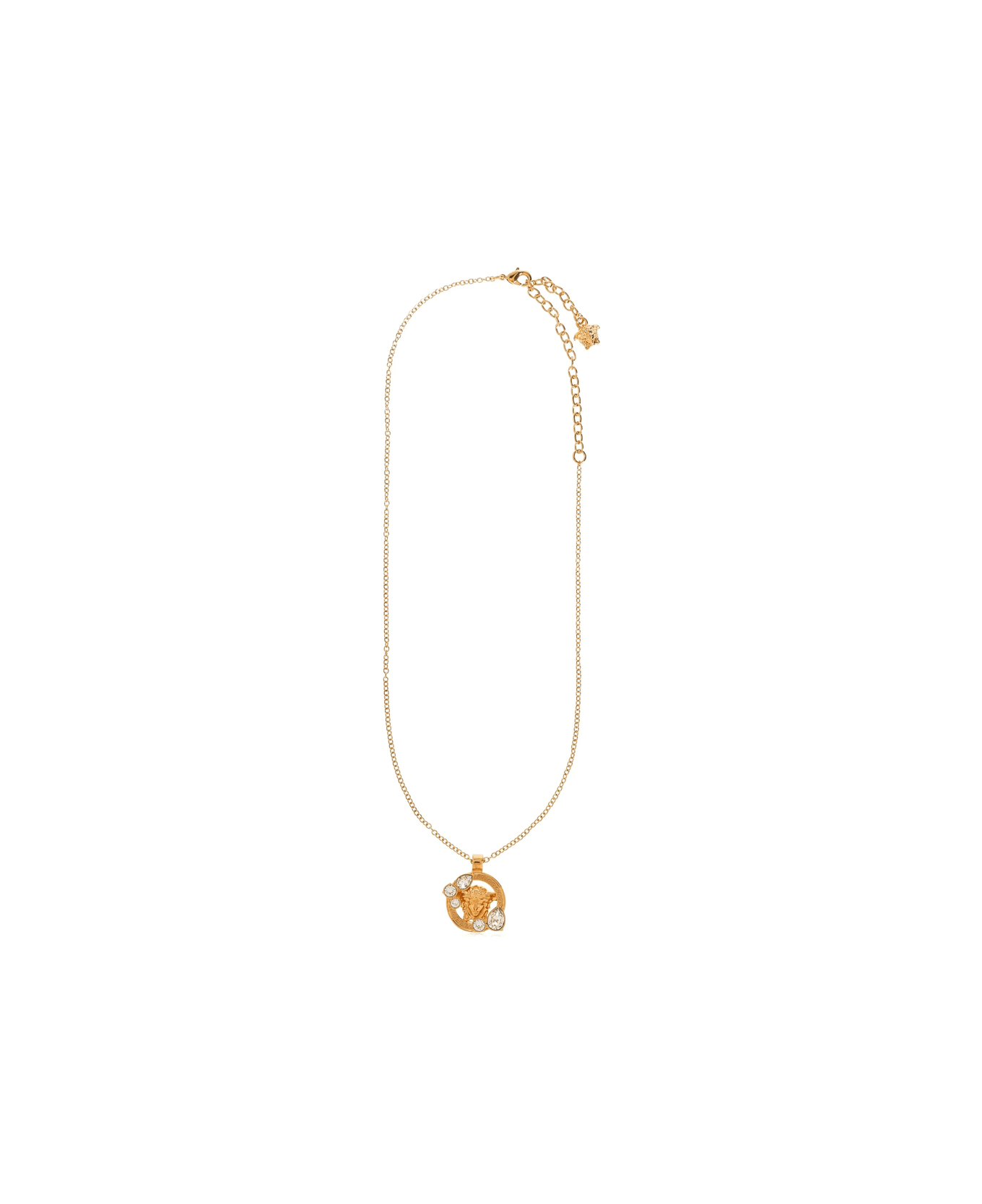 gold-tone Medusa Head pendant crystal embellishment lobster clasp fastening adjustable length