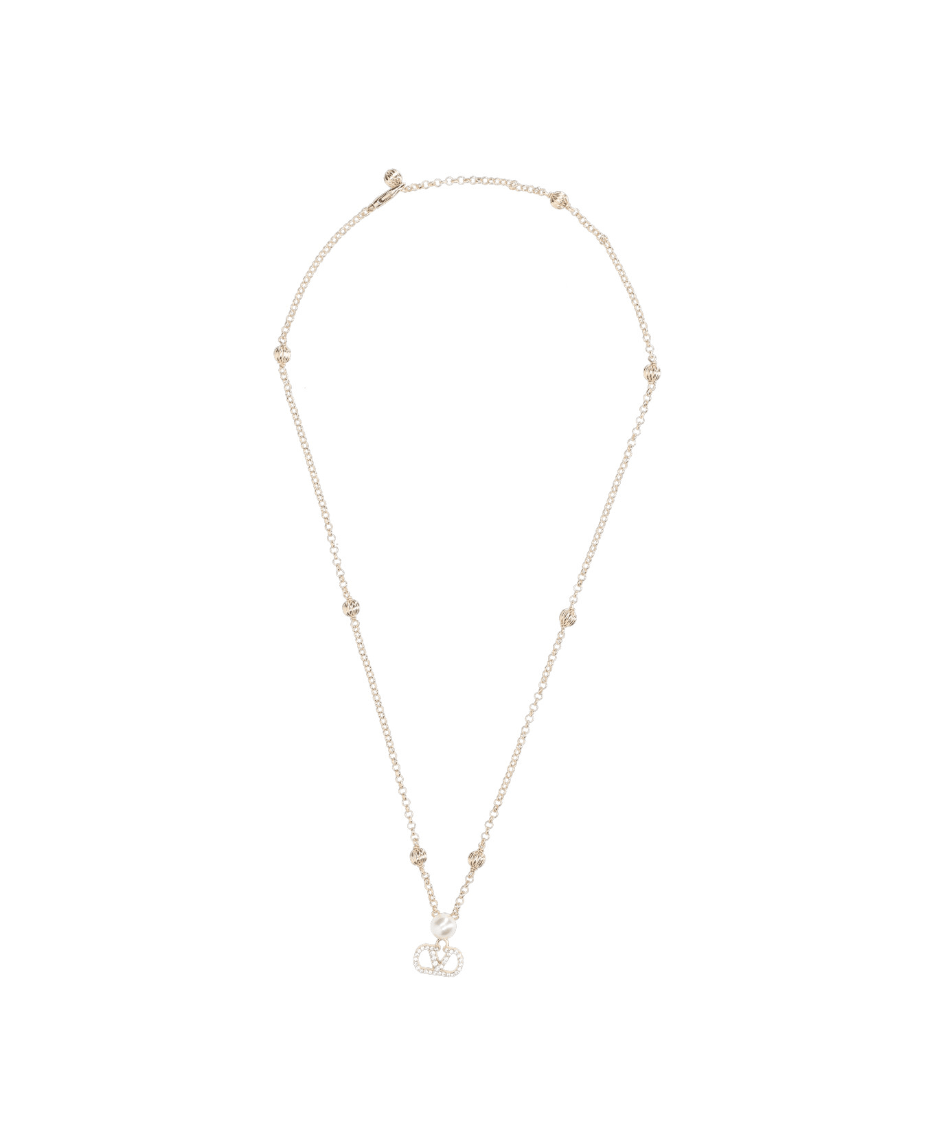 Valentino Garavani "VLogo Signature" necklace in gilded brass, "VLogo Signature" pendant charm, embedded crystals, pearl, all-over gold metal charms, back clasp closure. Composition: 100% Brass