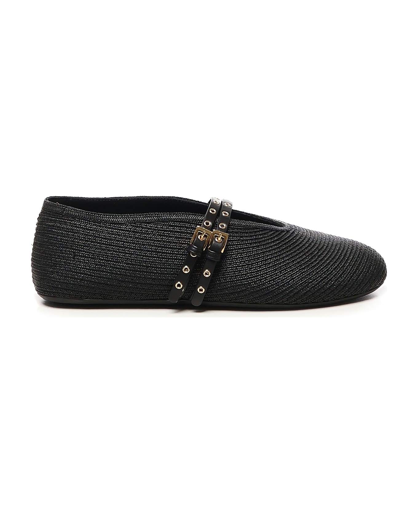 -Made of straw -Adjustable straps with buckle -Rounded toe -Rubber sole -Made in Italy -Color: Black