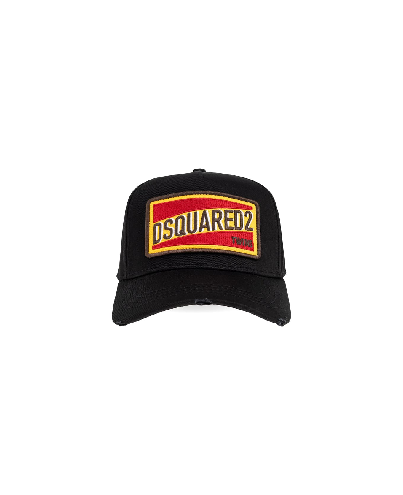 black logo patch adjustable strap curved peak distressed detailing