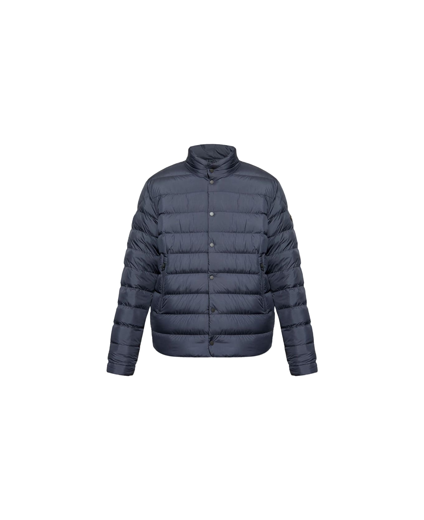 blue quilted design front press-stud fastening high neck side zip-fastening pockets logo patch