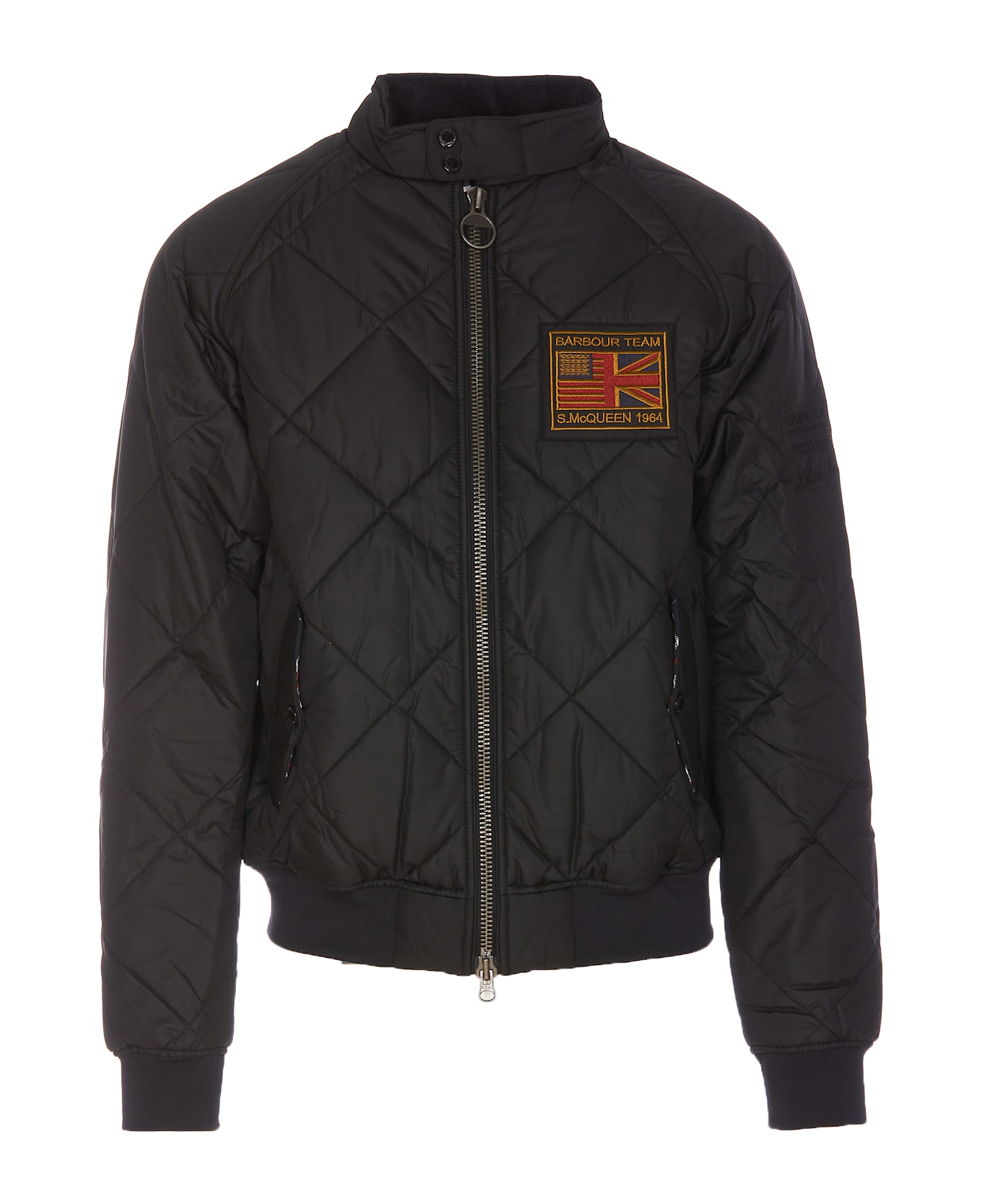 Barbour International black quilted merchant light down jacket, frontal zip closure, frontal patch logo, embroidered on sleeves, quilted effect, long sleeves, elasticized on cuffs, pockets with button, light padded, collar with button closure