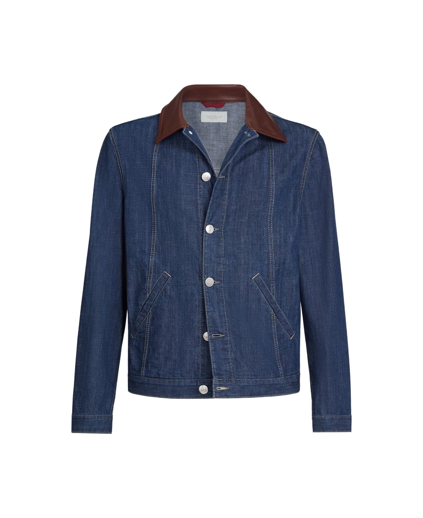 blue denim leather collar button fastening front pockets topstitching pure cotton Composition: 100% Cotton