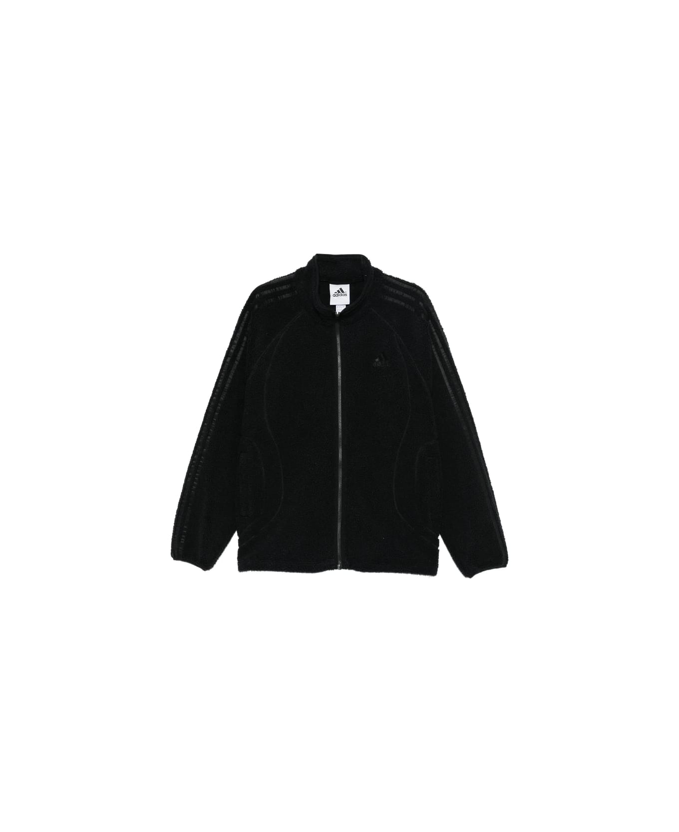 black three-stripe detail zip fastening long sleeves high neck embroidered logo
