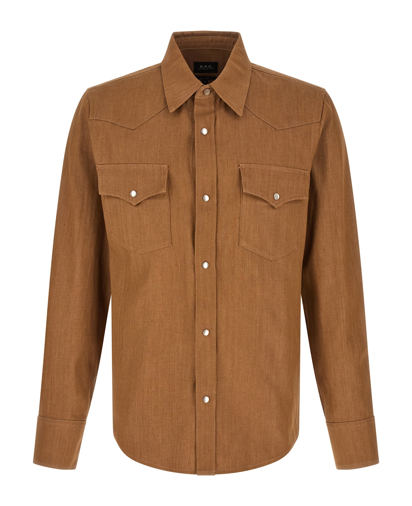 'Western' shirt in garment-dyed cotton denim with pointed collar, front snap button closure, pockets, long cuffed sleeves. SUSTAINABLE: This product is made with organic cotton.