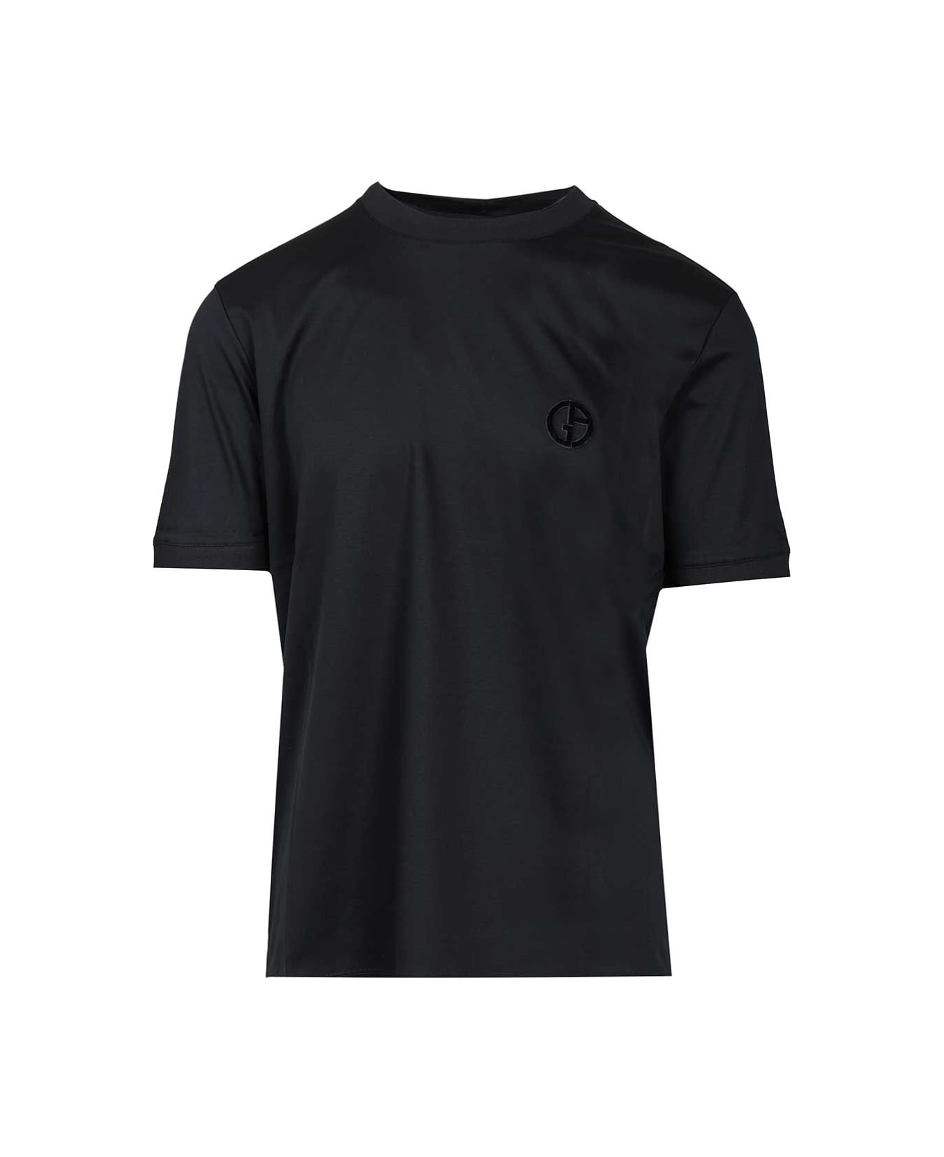 Crew neck T-shirt in blue cotton with tone-on-tone embroidered GA logo