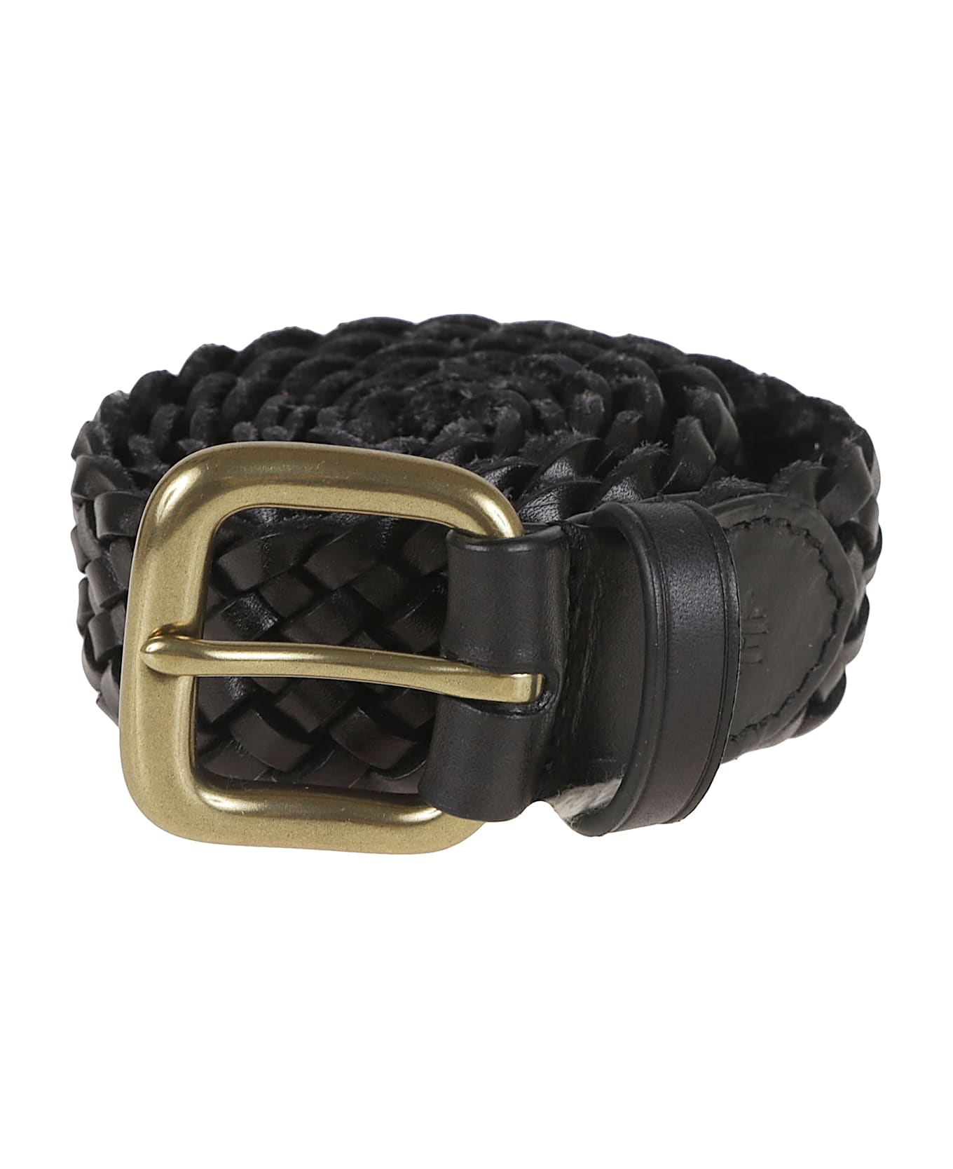 Hand-woven leather belt in 10 strands by DRAGON. Buckle closure.