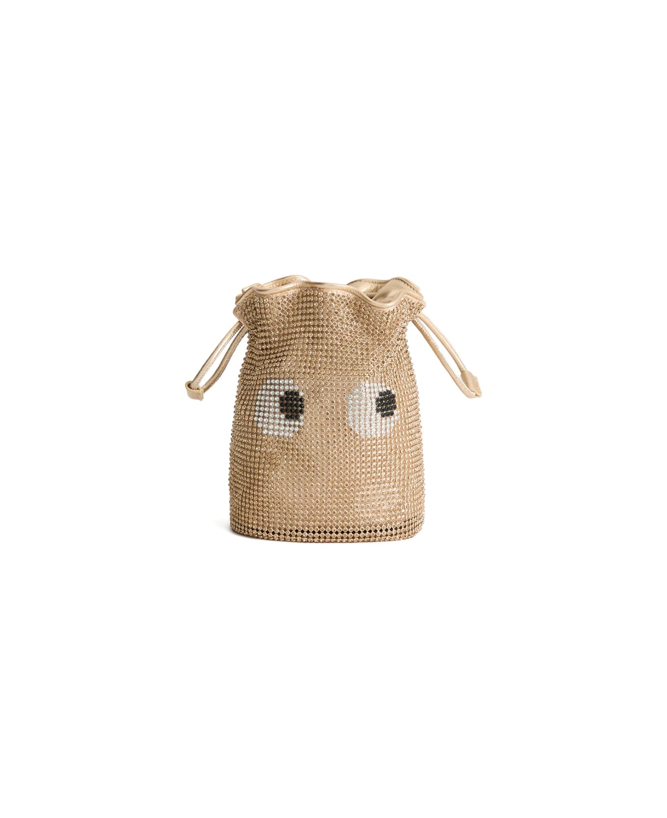 gold-tone embellished panel drawstring fastening detachable chain-link shoulder strap eye motif gathered top
