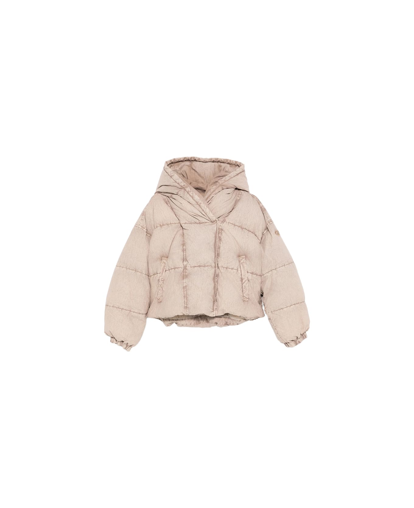 beige padded design hood front zip fastening two pockets elasticated cuffs