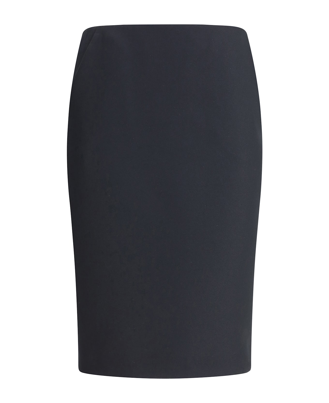 Giorgio armani's techno scuba pencil skirt stands out for its clean lines that elegantly enhance the feminine silhouette. featuring a back zip closure and slanted side pockets, it's a versatile and sophisticated style, perfect for both formal and informal occasions.