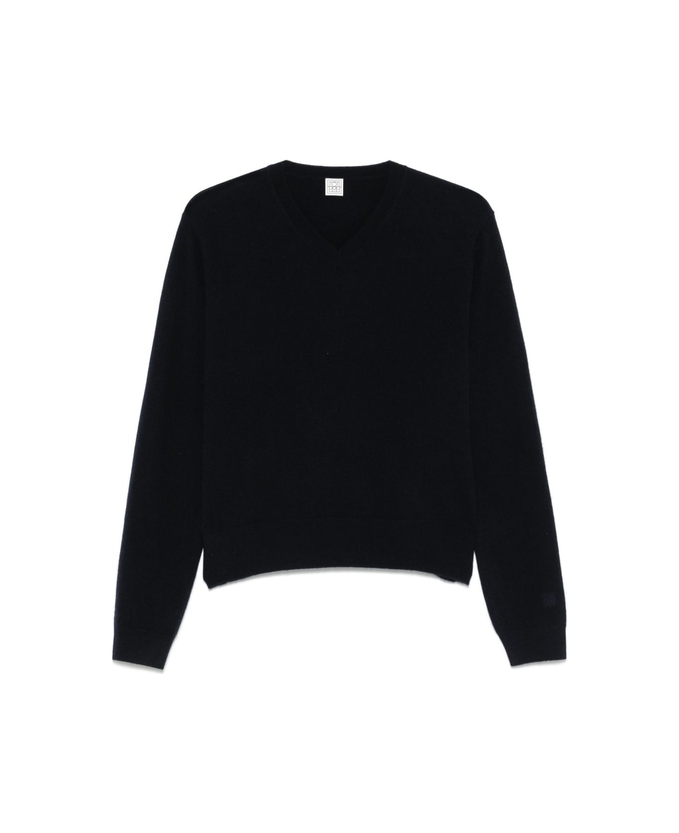 navy blue ribbed V-neck long sleeves ribbed cuffs and hem