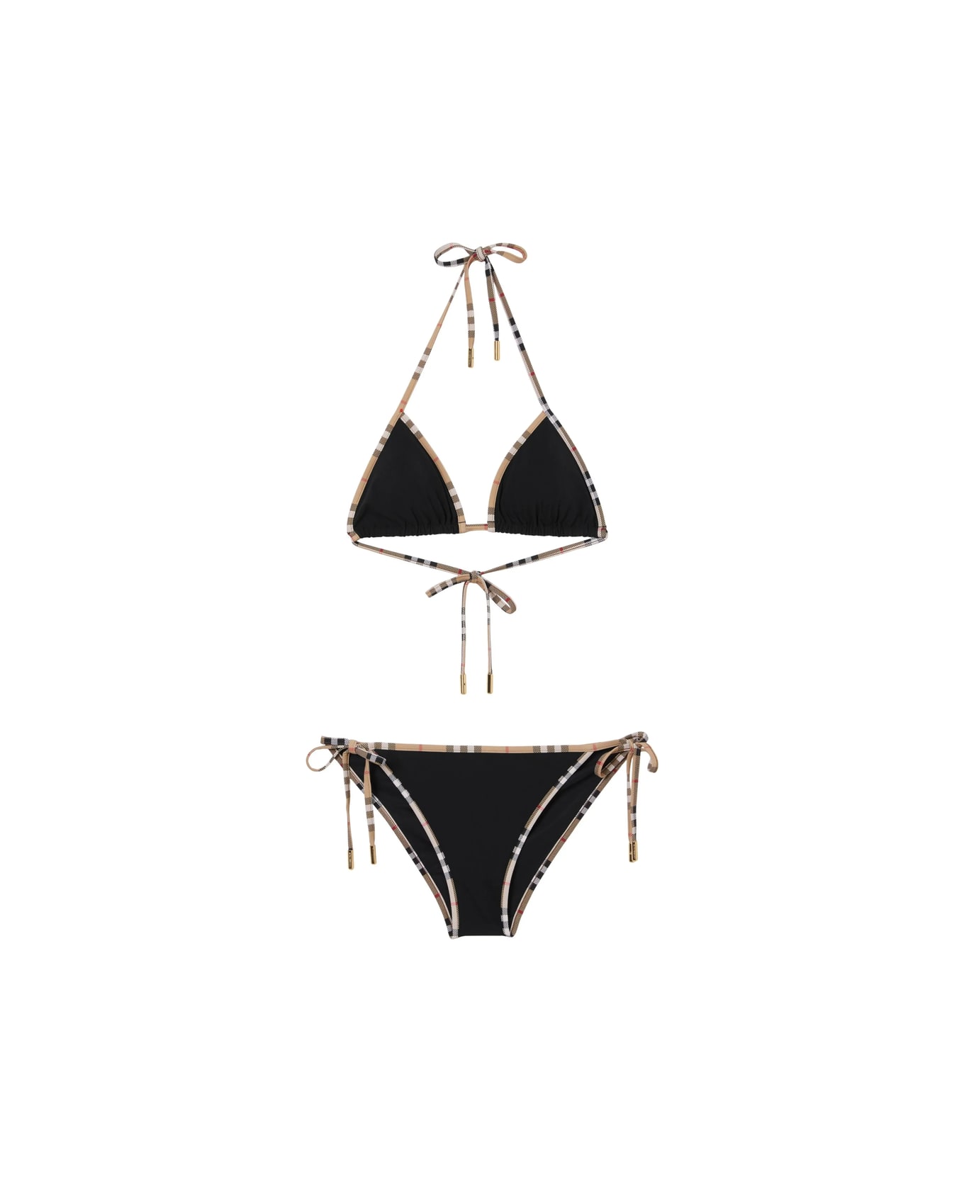 black Vintage Check pattern contrasting trim side-tie bottoms halterneck tie fastening triangle cup Be mindful to try on swimwear over your own garments.