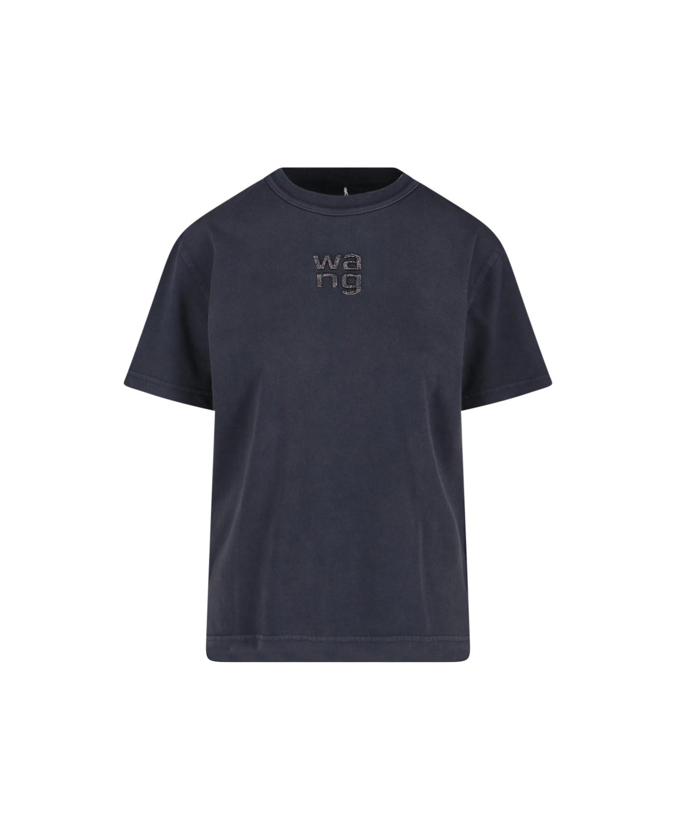 Alexander Wang logo t-shirt in black cotton, crew neck, short sleeves, logo lettering on the front, straight hem. Composition: 100% Cotton